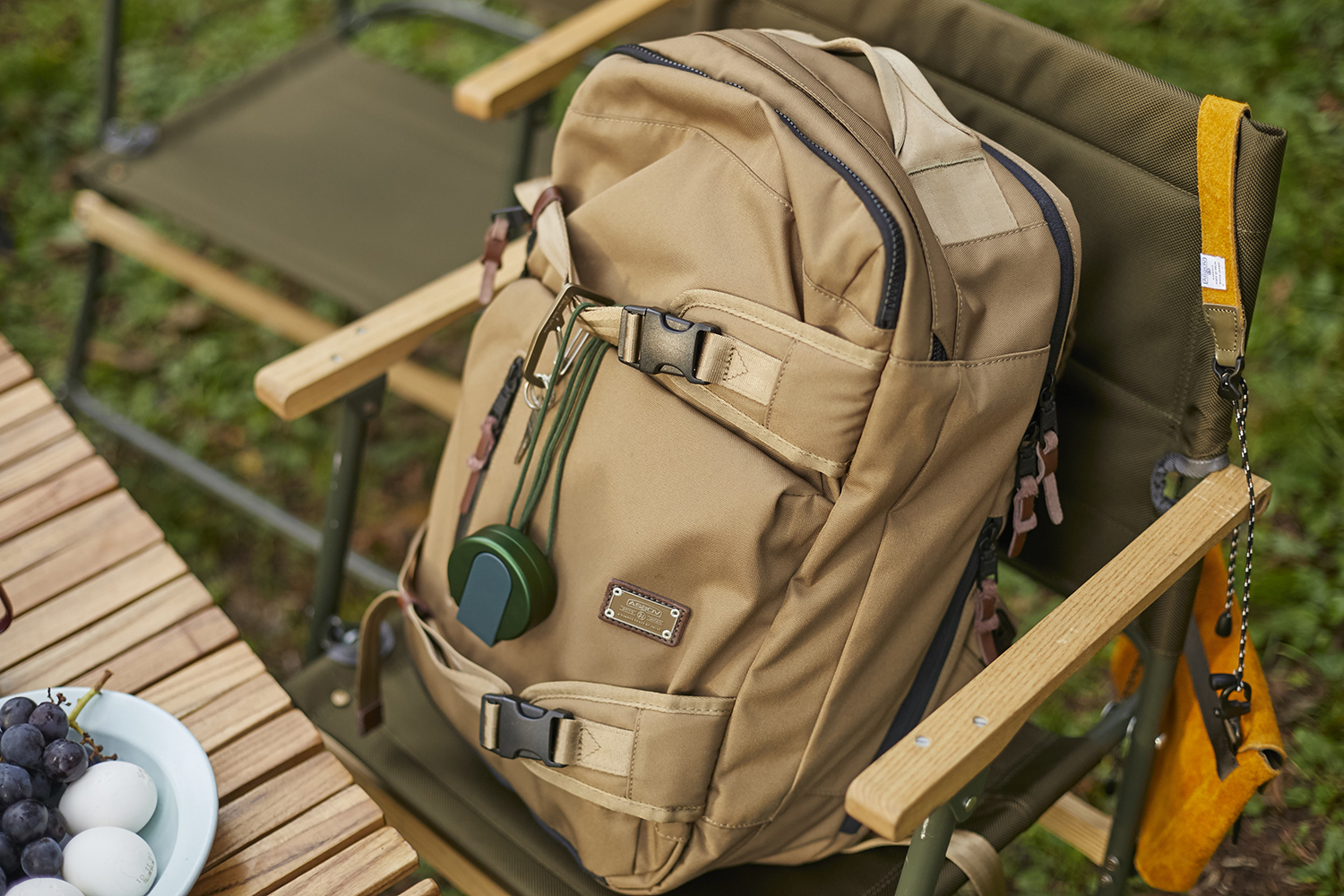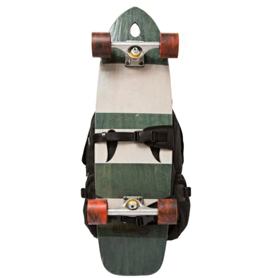 デザイン面では象徴的な大きな2本のバックルが特徴です。はじまりはスケートボードや遊び道具を取り付けるデザインではありますが、暑くなり脱いだコートやジャケット、マウンテンパーカー等を引っかけてもバックパックがシンプルで落ち着いたデザインなのでアクセントになります。