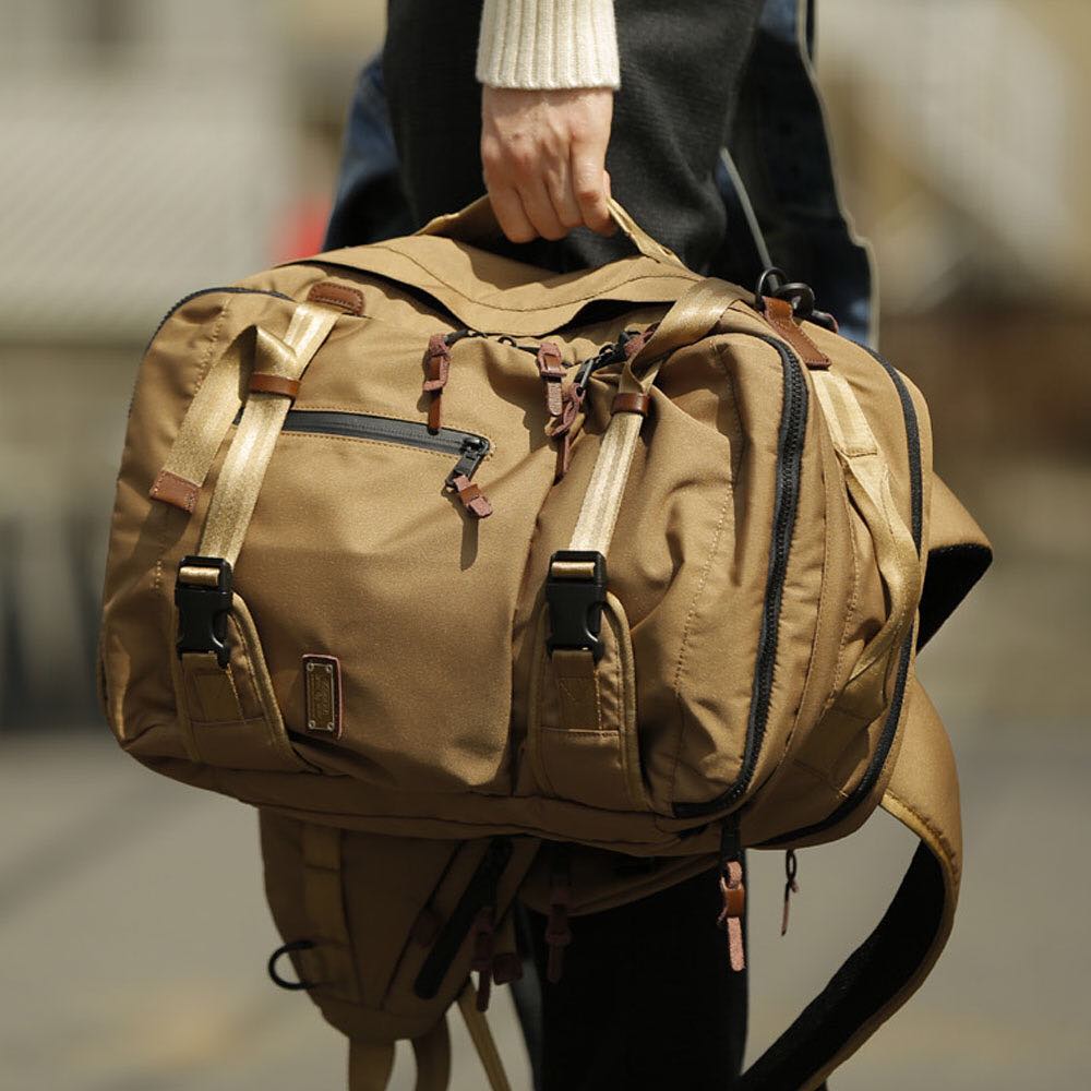 メインの素材には305Dの特殊ポリエステル糸を使用したCORDURA® 305d fabricを選び、昔ながらのドビー織りという製法を採用した本シリーズ。生地本来の特徴を生かすために生地の裏面に、通常よりも2倍程度のポリウレタン加工を施しました。