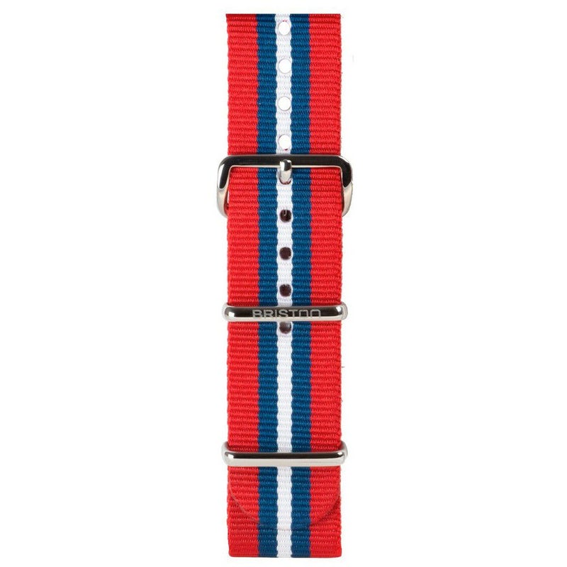 素材 : ナイロン、ステンレス 防水性 カラー : ストライプ柄(レッド、ブルー、ホワイト) カラーループ&バックル : 研磨仕上げスチール