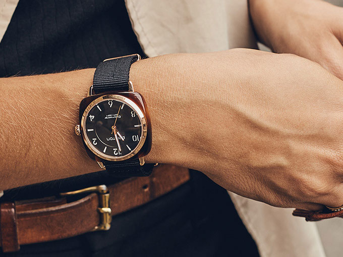 クラブマスターシックは、クラブマスターのスクエアカンバードフォルムを忠実に継承しています。ブリストンは、このクラシックモデルを再解釈してエレガントな36 mmウォッチに変化させました。クラブマスターシックは、3針バージョンです。このモデルは、オルロジュリーの個性と気品を強調するダブルレイヤーのダイヤルが特徴です。