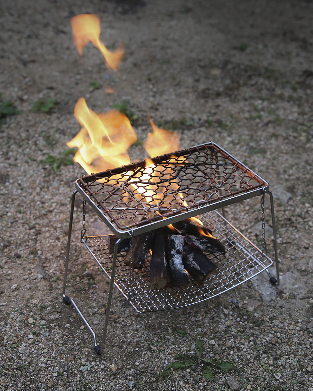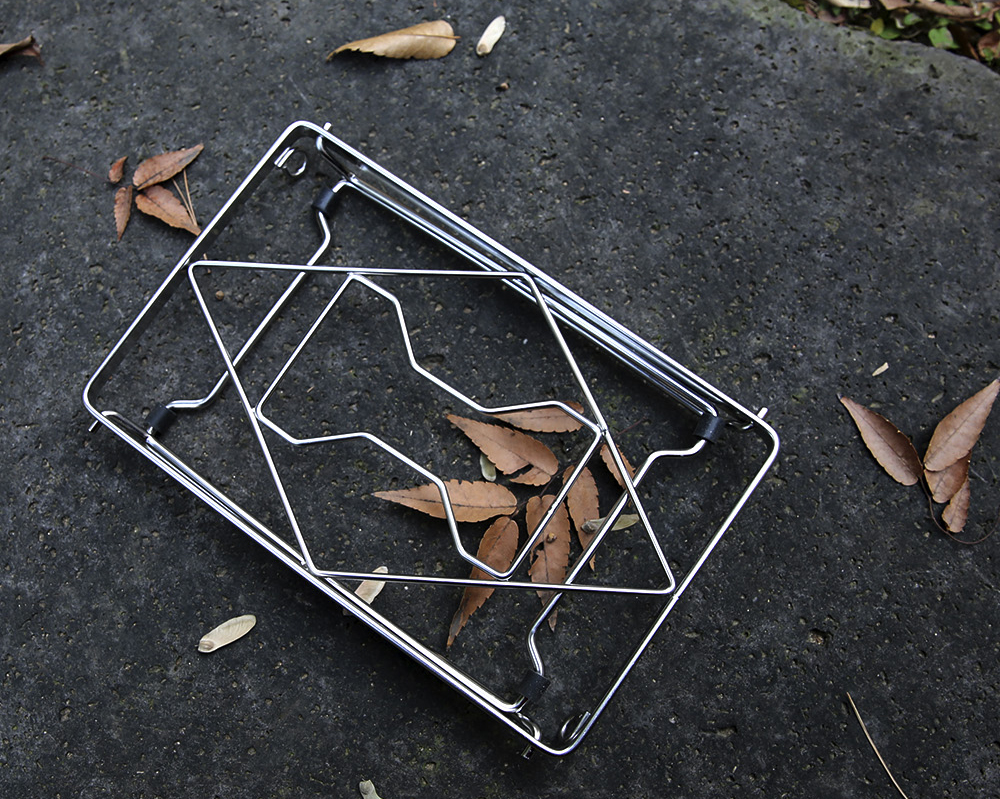 バックパッカーの多様性を完成させる万能スタンド。安定したバーナー台、テーブル、火炉台にまで活用できるアイテム。
