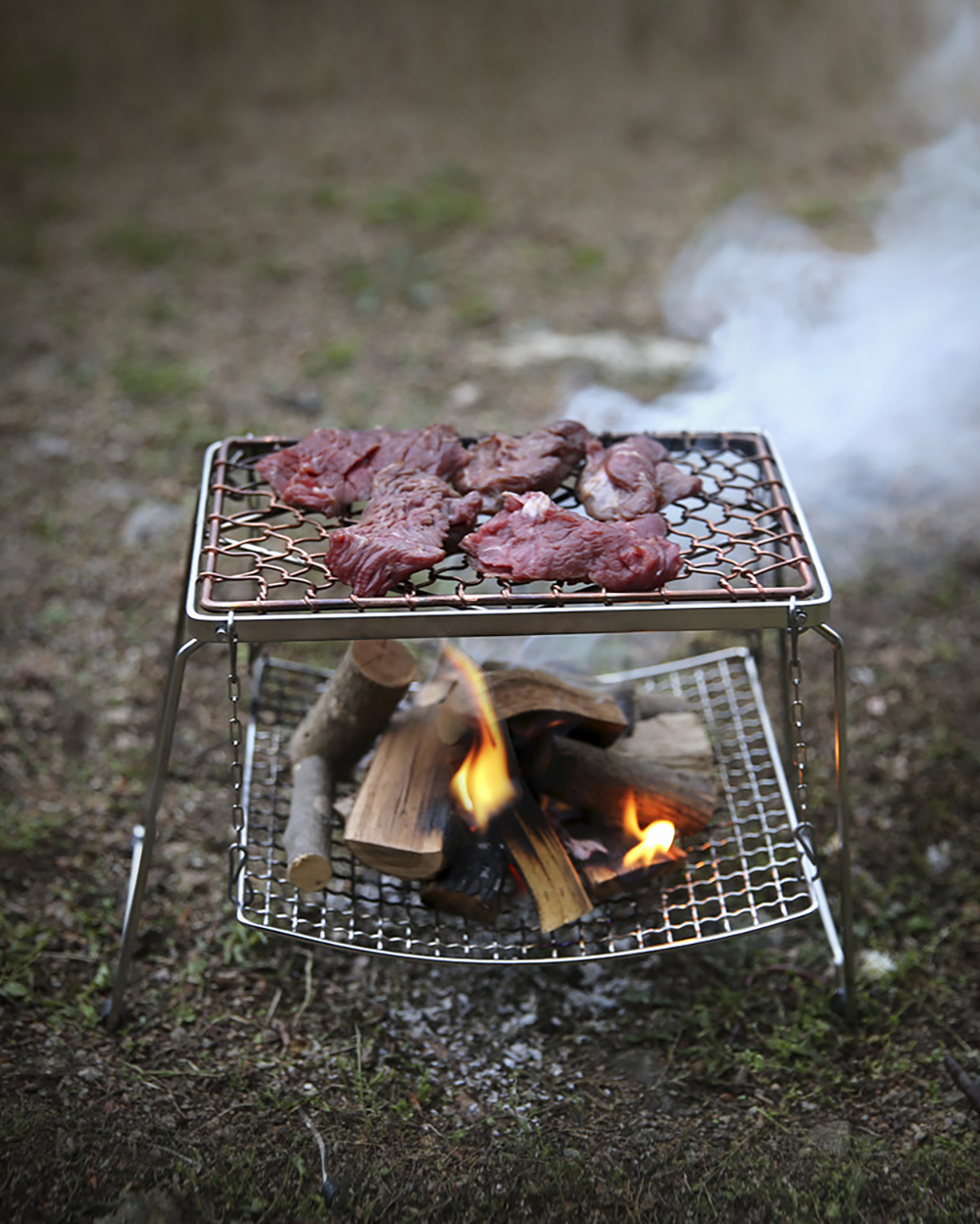 人気のBBQ GRILL SET(焼き網・ミニスタンド・ワイヤー火炉台3点セット)は銅製で総重量は590gの超軽量仕様です。