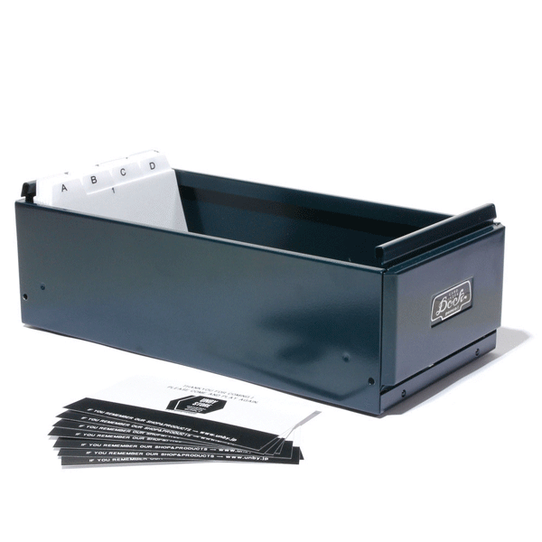 名刺などカードが収納できるケースです。 インデクス(A-Z)が付属しておりますので、カードを奇麗にまとめることが出来ます。 S,Lの2サイズなので、カード量に合わせて使えます。 -サイズ- パッケージ / 幅10.6 × 高さ8.5 × 奥行21.4 (cm) 本体 / 幅10.2 × 高さ8.1 × 奥行21.2 (cm) 素材 スチール・PS 生産 台湾 パッケージ 紙スリーブ 備考 名刺・約600枚収納可能