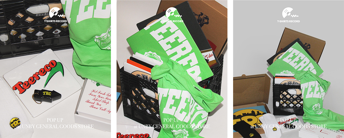 レコ屋系Tシャツショップ、ティーレコ。レコードに見えるすべての商品が実はTシャツとなっており、パッケージから集めたくなる素敵なブランドです。