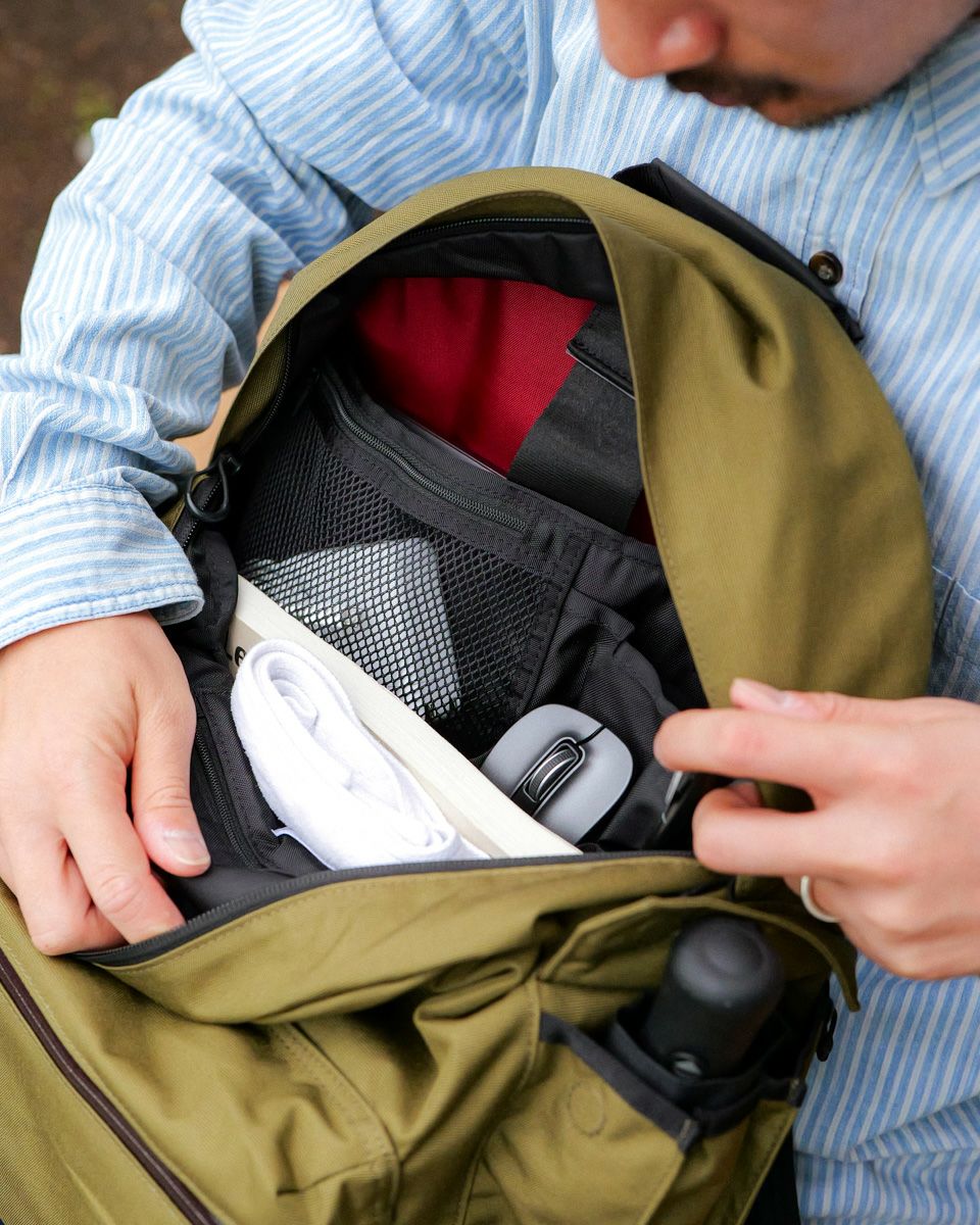 W350 x H470 x D160 mm 容量 : 30 L 重量 : 0.9kg PCポケット : 16インチ(Macbook基準) モデル身長 : 175cm