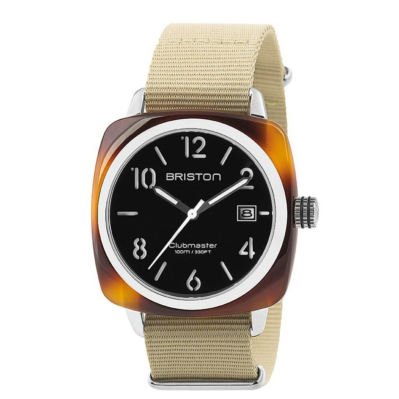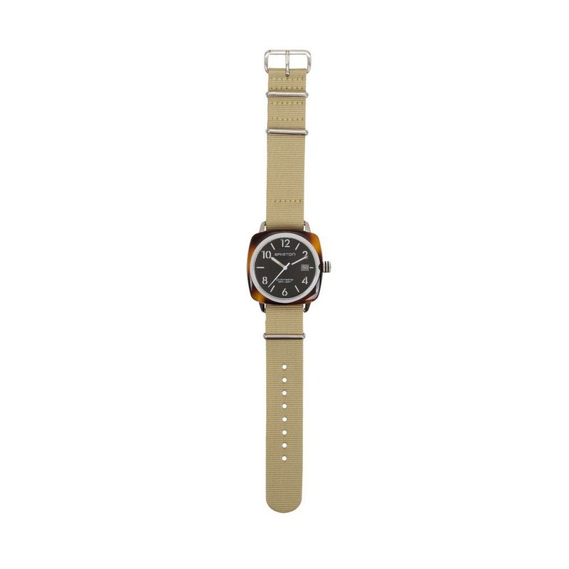 BODY - イタリア製 トータスシェルアセテート: 手作り研磨仕上げ - ラグ / ベゼル / クラウン / スクリューダウン式ケースバック : 研磨仕上げ 316L ステンレス - 黒ラバーリングに「BRISTON」ロゴが刻印されたクラウン(プッシャー) - ドーム型ミネラルクリスタル - 厚さ 2.3 mm - 防水性能: 100 m / 10 気圧 MOVEMENT - クォーツ キャリバー : Miyota 2315 - 機能 : 時間、分、秒、日付表示 - 日付を3時の位置に表示 DIAL - 上部プレートの色 : ブラック - 下部プレートの色 : シルバーホワイト - インデックスの色 : ホワイトのアラビア数字で刻印された時間表示 HANDS - スーパールミノバ® 使用 STRAP - 取り外し交換可能なNATOストラップ - 防水、ウォッシャブル可動 - ループ付き