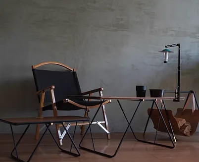 メインとするテーブルのサイドテーブルとして、高さの違ったテーブルレイアウトは、ボトルなど高さのあるものを置くのにも最適。アウトドアでのレイアウトをお楽しみください。
