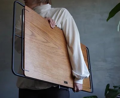 組み立てる必要がなく設置ができ、折りたたんで薄く持ち運べる適度なサイズのテーブル。