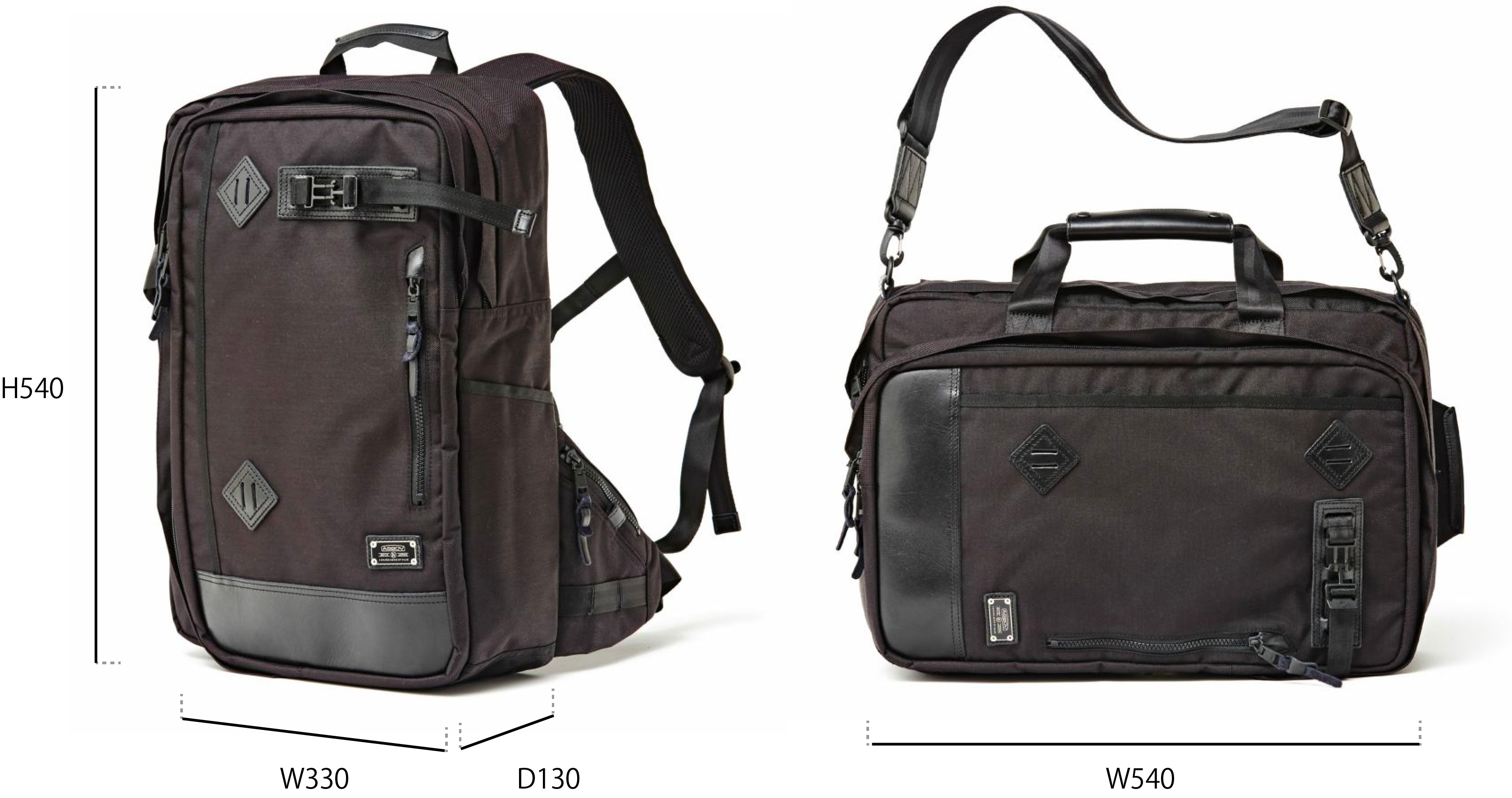 AS2OV独自のバリスティックナイロンを使用した3WAYバッグ。バックパック、手持ち、ショルダーバッグ、と3通りの使用ができ、プライベートからビジネスまで幅広くお使いいただけます。下部にレザーを施し、重厚感のある仕上がりです。