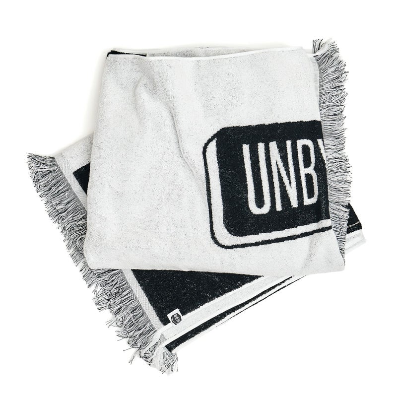 本体素材には,今治産のコットン100%を使用しています。 UNBY ORIGINAL TOWELは、マフラータオルと、ビーチタオルの2種類。 マフラータオルは、片面シャーリングの両面プリント。ビーチタオルは、ジャガード織りを採用しています。