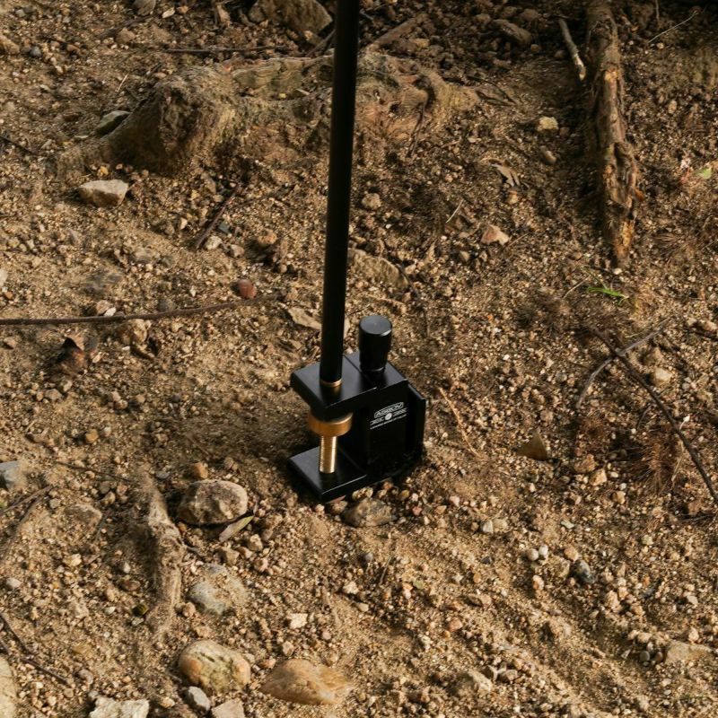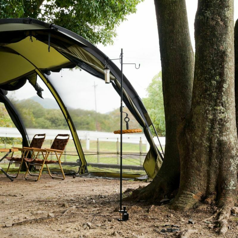 ポール類は軽量なアルミで作られ、しっかりとした台座部分を含めても総重量450gとファミリーキャンプは勿論ソロキャンプやちょっとしたピクニックでも活躍するランタンスタンドが登場です。テントから離れて少し離れた場所で使用するときは打ち込んで使用すると便利です。