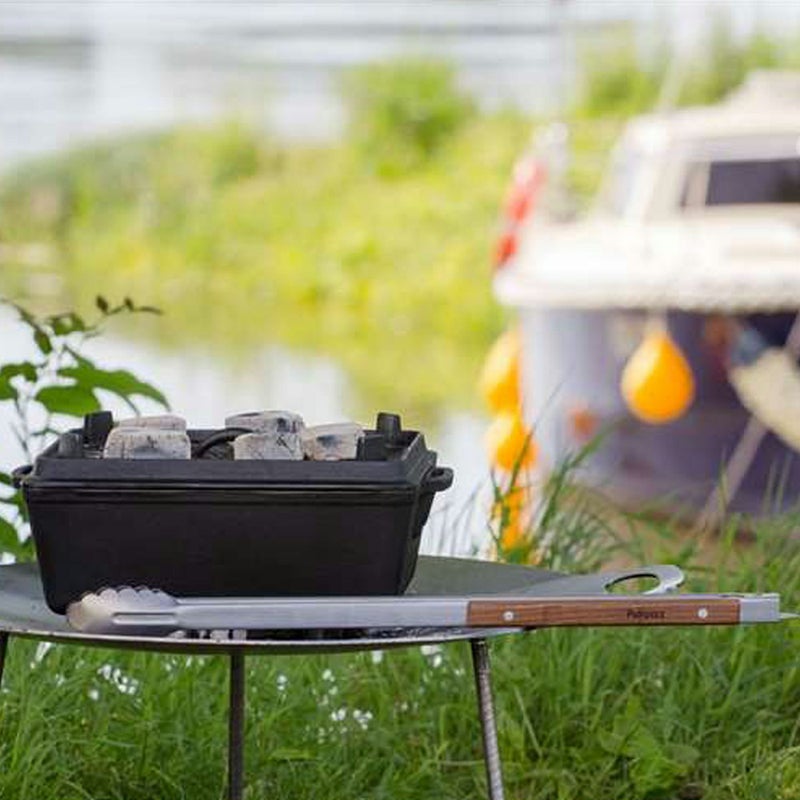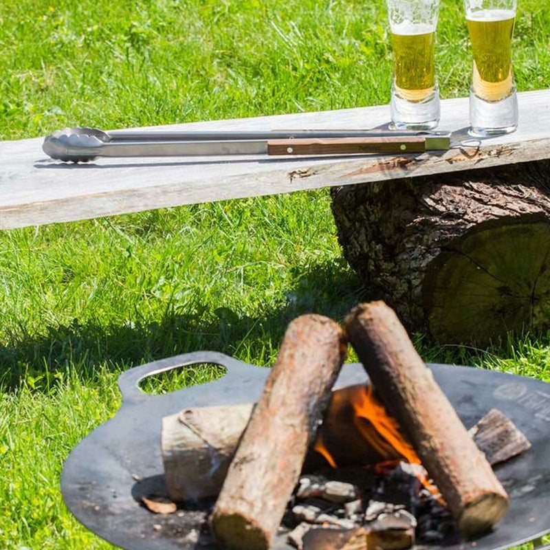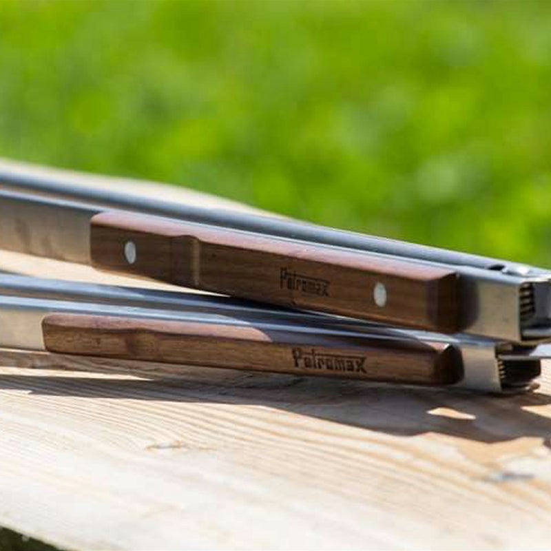 スチール製の本体の先端は波型形状となっており、食材や火のついた炭を掴みやすく大変便利です。 手にしっくりなじむ木製ハンドルを採用。