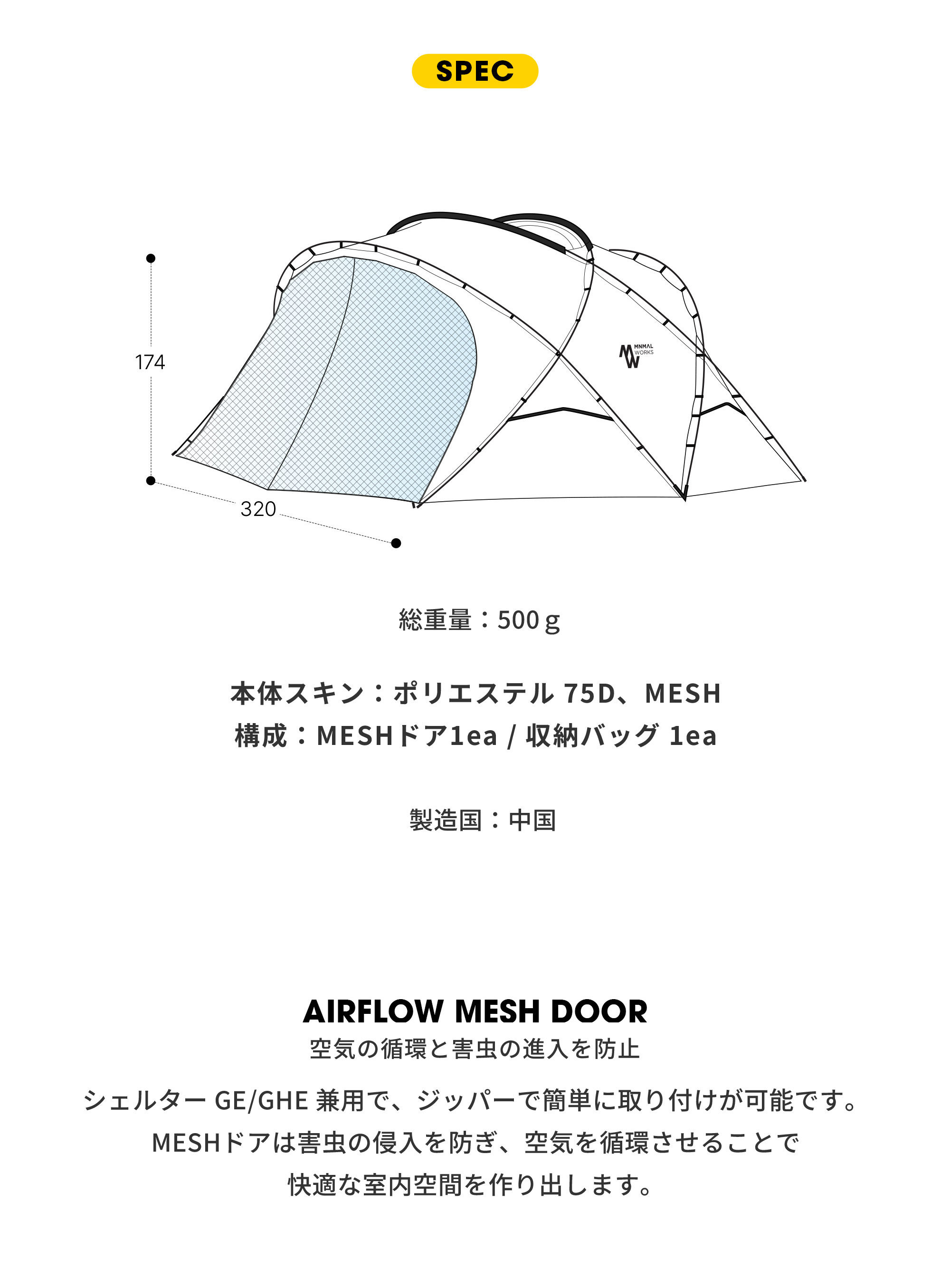 構成:MESHドア1ea / 収納バッグ 1ea