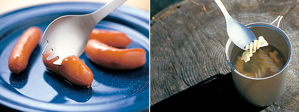 軽くて丈夫なチタンを使ったバックパッカー向けカトラリー。 フォークとスプーンを兼用できるチタン製の超軽量カトラリー。ハンドルには何かと役に立つ穴を開けています。ソロアクティブはもちろんキッズにも最適です。 懐かしいフォルム、オールラウンドな1本。 スプーンとフォークを1本で兼用できるチタン製カトラリーです。ソロユースはもちろんオートキャンプでの予備、調理用スプーンとしても安心の1本です。
