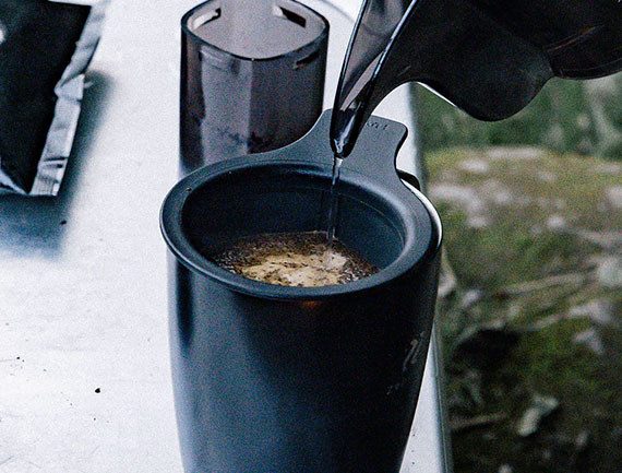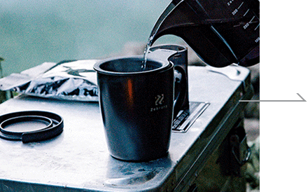 ひとつで二役のマグ&コーヒーメーカー アウトドアで冷えた体を温めるのに最適な保温性の優れたマグ。 保温マグとしての使い方はもちろん、コーヒー粉と熱いお湯があればこれ一つで美味しい一杯のコーヒーが淹れられます。 コーヒー粉をお湯に浸すことでコーヒー豆の味を余すことなく引き出せます。 POINT1 香りを高めるコーヒーオイルが抽出できるこだわりのメッシュフィルターは、繰り返し使っても色の移りにくいブラックカラー。 POINT2 3分経ってストレーナーを外す際、ストレーナーの底部にあるくぼみをマグのフチにかけることでお湯切りができます。また、フタを裏返しておくことによりストレーナー置きになります。 HOW TO BREW COFFEE 1 コーヒー粉は目盛りまでお湯は8分目まで入れて 2 フタをして3分待ちます 3 ストレーナーを外して出来上がり