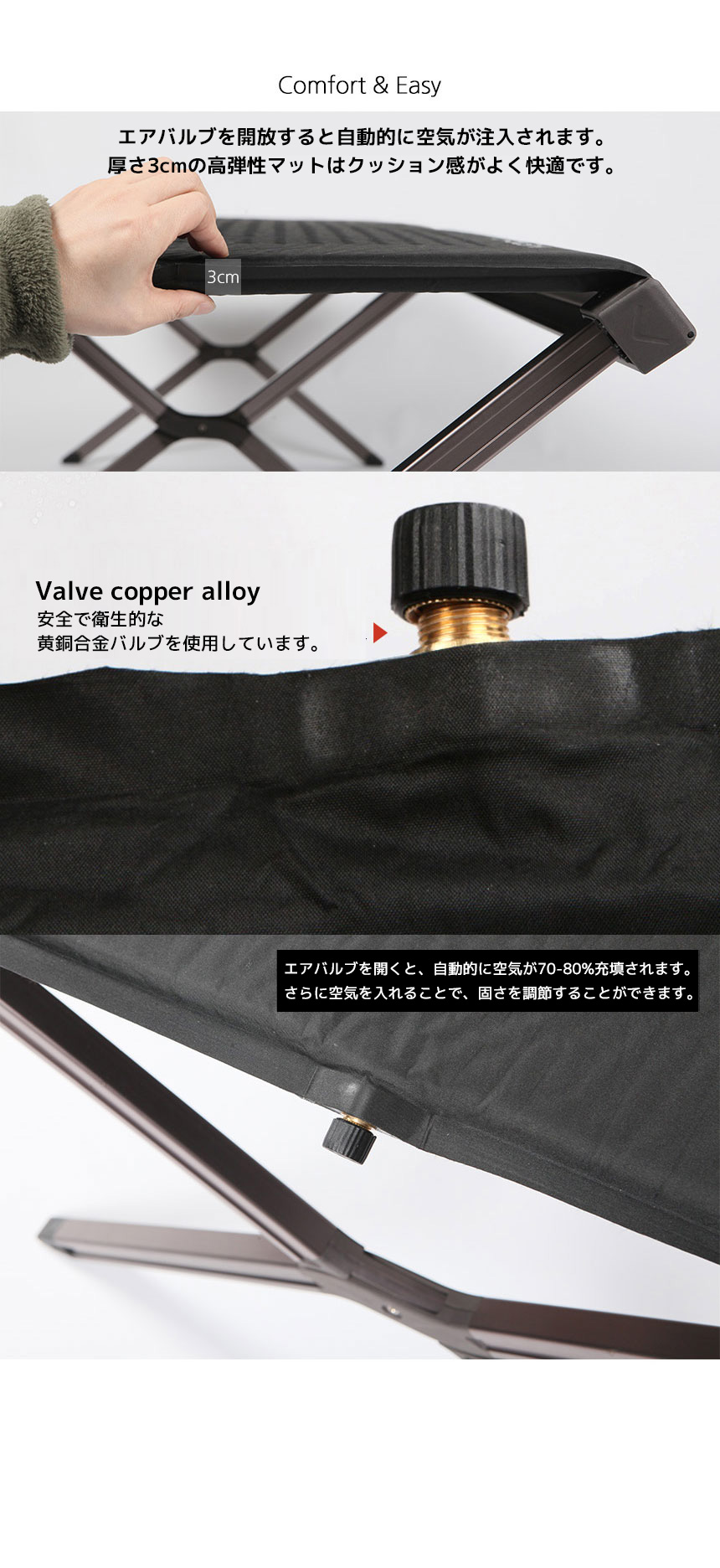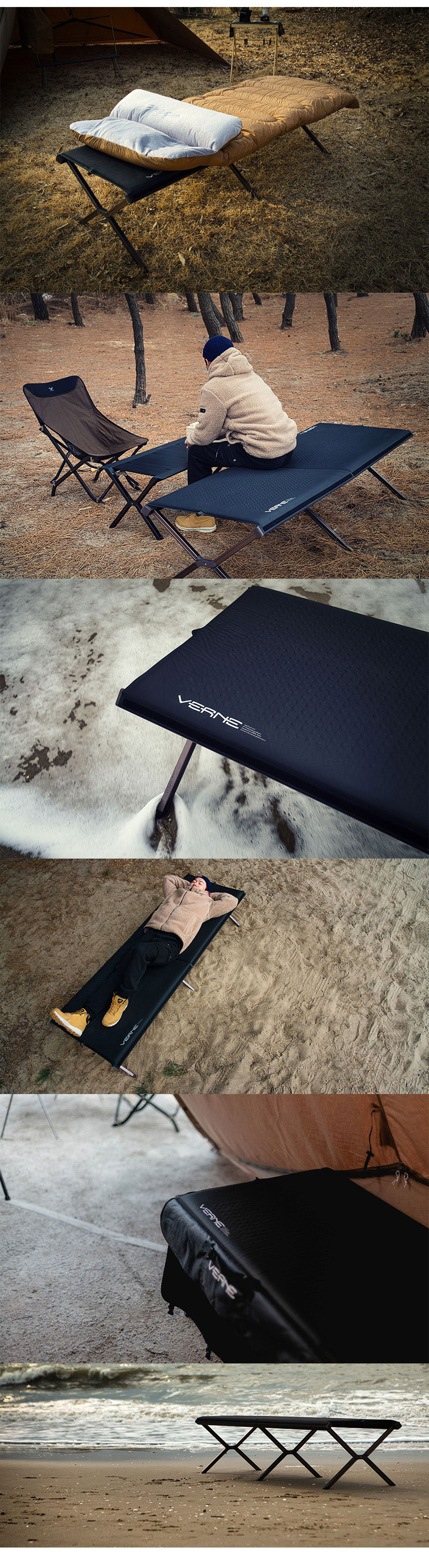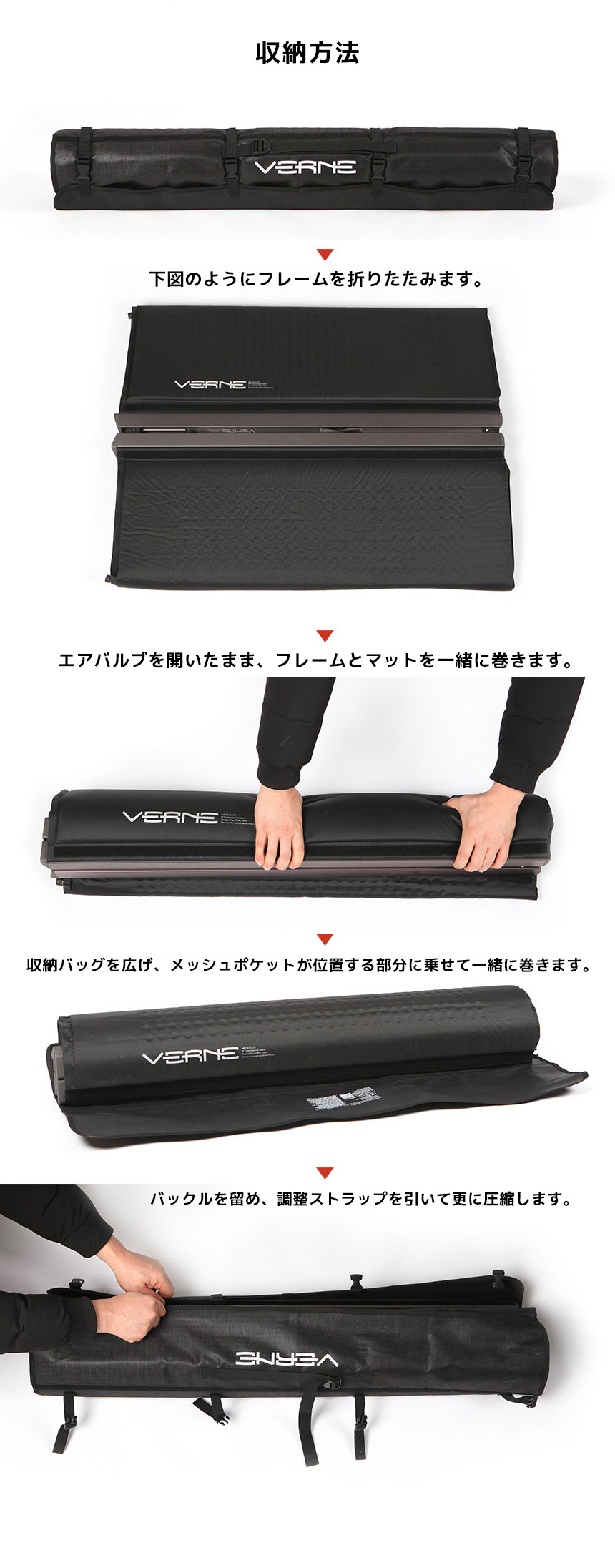『Nautilus( ノーティラス)』は、ジュール・ベルヌの小説【海底二万里】に出てくる潜水艦の名前からネーミングしています。 Nautilus、それはわたしたちにとって革新の象徴を意味しています。 「ノーティラスマットコット」は、使用時、故障が起きないように基本設計に再着目しました。マットとシートが一体になっている特徴が代表的な要素であり、パーツ、細部にまでこだわった自信作です。 潜水艦をモチーフに、狭い空間、劣悪な環境でも最高の休息を作り出す戦術装備を再現しています。(そう、最高の休息が戦闘力を兼ね備える最も重要な要素です。) 便利な収納を叶えるロールタイプ鞄や、様々なオプションを付属活用できる機能を追加したほか、使用者ご自身でシートを交換できるように考慮しました。 本製品にぜひ寝転がって,空を眺めてみてください。まるで浮かんでいるように感じられるはずです。 METARIALS : Aluminium6061,Stainless304,Polyester SIZE : 71×193×47.5 収納時99.5×17(cm) WEIGHT : 8.6kg