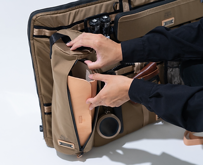 【森を旅の乗り物】と見立て、そこに乗車する際のバッグとは何かをコンセプトとしたForest Passengersシリーズ。必要な時に、必要なだけ、そしてできるだけコンパクトに森へ出かけ、小分けにプロダクトされたバッグを組み合わせ、自分だけの組み合わせを楽しむタクティカルバッグ。MAKIOKIを1台まで収納できるTactical Bag / Oval。