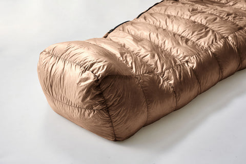 通常モデルよりもフットボックスを大きく設定し、ダウンを多めに封入しました。これ により足元を冷えから守ります。