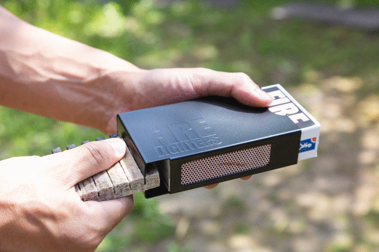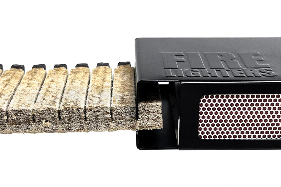 重厚感と無骨さを兼ね備えたスリーブケース【マットブラック】 POINT.1 限定カラー マットブラック登場 昨今のキャンプ製品で高い注目を集める「ブラックギア」。 重厚感と無骨さを兼ね備え、存在感を放つ仕上がりとなりました。 また「マットブラック」はアウトドア専門店特別カラーとなり、メタル版とは異なるクールな魅力を持ったケースです。 ※ファイヤーライターズ × 1個、スリーブケース × 1個がセットとなったパッケージです。 "width:100%;"> POINT.2 お客様の声から誕生したスリーブケース 「FIRELIGHTERS SLEEVE CASE」は「FIRELIGHTERS」をご使用いただいた方々の貴重な声から誕生した製品です。 アウトドアシーンでのパッケージ潰れを防ぎ、FIRELIGHTERSを簡単にカットできる機構をプラスしました。 POINT.3 FIRELIGHTERSのカット方法 1. FIRELIGHTERSを取り出す 2. FIRELIGHTERSの箱をケースから少し引き出す 3. スティックにある切れ込み溝をケースに差し込んで折る 4. FIRELIGHTERSの箱の側面で擦り、着火 Mt.SUMI/マウントスミ Mt.SUMIは京都宇治炭山という山間部にあるアウトドアメーカーです。 “炭山”という地名は昔、山の木を切り出し、その木で炭を作っていたことに由来しています。 人々は自然の恵みを生かしながら暮らしていました。 私たちも事業の傍ら、地域の山を守るべく、山の整備活動を行っています。 間伐した材は薪になり、山間部の寒い冬の暖かな燃料となります。 作業が終わると仲間と焚き火をし、火を囲むと皆が自然と語り合い、笑顔になります。 人と火は古来から密接に関係し、灯り、温もり、暖かな料理を与えてくれるとともに危険な動物たちからも身を守ってくれました。 ゆえに人は火から安らぎを感じるのではないでしょうか。 私たちは火とともに過ごすアウトドアを提案していきたいと思います。 火を囲み、自然に感謝し、人がいつまでも人らしくいられることを願って。