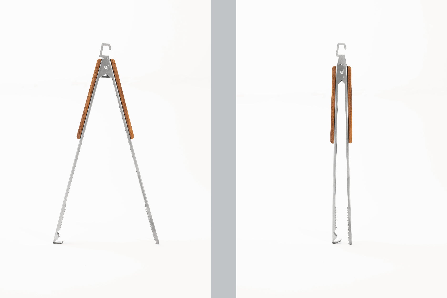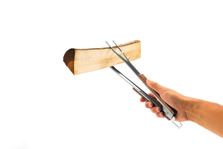先端分岐構造で薪や炭を しっかり掴む自立式の火バサミ POINT.1 安定して掴めるこだわりの形状 片側の先端が2点に分岐していることで、薪や炭などを3点で掴むことが可能に。 掴んだものがブレにくくなり、安全かつ安定したハンドリングを実現しました。 POINT.2 便利な自立式 閉じた状態でも、開いた状態でも立つ自立式。 閉じた状態をキープするロック機能も搭載。 フック付きで、薪ストーブやグリルに引っ掛けられるのも嬉しいポイント。 POINT.3 充実の機能性 先端のかぎ爪は火かき機能だけでなく、ダッチオーブンなどの蓋を引っ掛けて使用することも可能。 先端部の一部にMt.SUMIのロゴが小さくあしらわれています。 Mt.SUMI/マウントスミ Mt.SUMIは京都宇治炭山という山間部にあるアウトドアメーカーです。 “炭山”という地名は昔、山の木を切り出し、その木で炭を作っていたことに由来しています。 人々は自然の恵みを生かしながら暮らしていました。 私たちも事業の傍ら、地域の山を守るべく、山の整備活動を行っています。 間伐した材は薪になり、山間部の寒い冬の暖かな燃料となります。 作業が終わると仲間と焚き火をし、火を囲むと皆が自然と語り合い、笑顔になります。 人と火は古来から密接に関係し、灯り、温もり、暖かな料理を与えてくれるとともに危険な動物たちからも身を守ってくれました。 ゆえに人は火から安らぎを感じるのではないでしょうか。 私たちは火とともに過ごすアウトドアを提案していきたいと思います。 火を囲み、自然に感謝し、人がいつまでも人らしくいられることを願って。