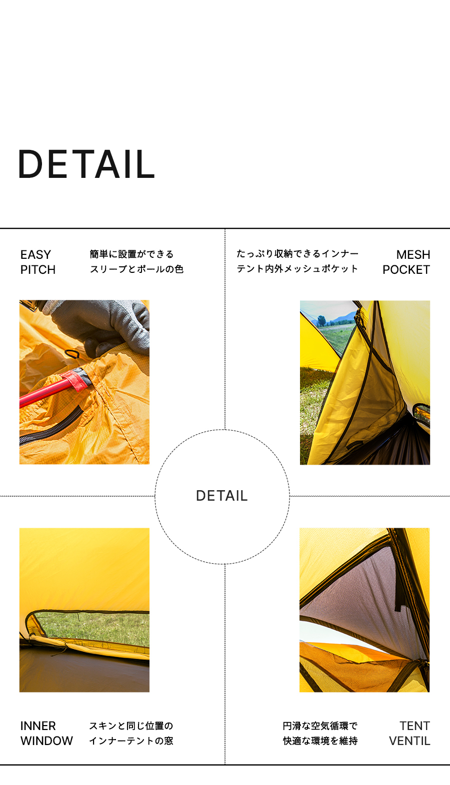 ・ 製品によってはテントのシートの上で使用する場合、生地損傷の恐れがありますので、ご注意ください。