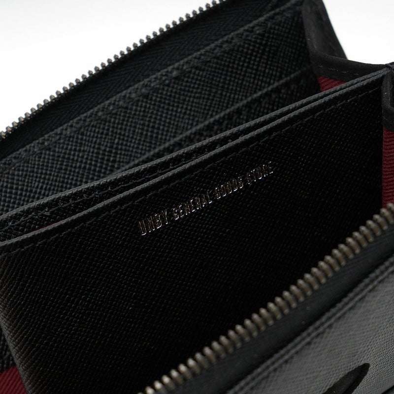 中には、お札を二つ折りにして収納できるポケットが付いています。 内装にUNBY GENERAL GOODS STOREのシルバーの箱押しがあります。