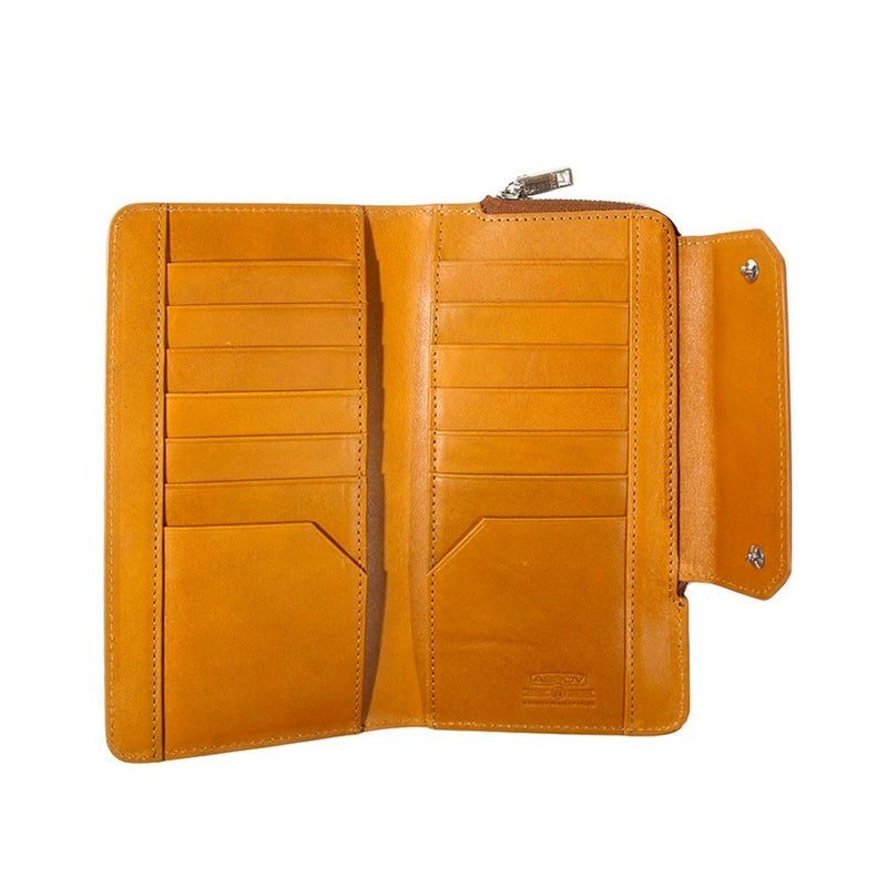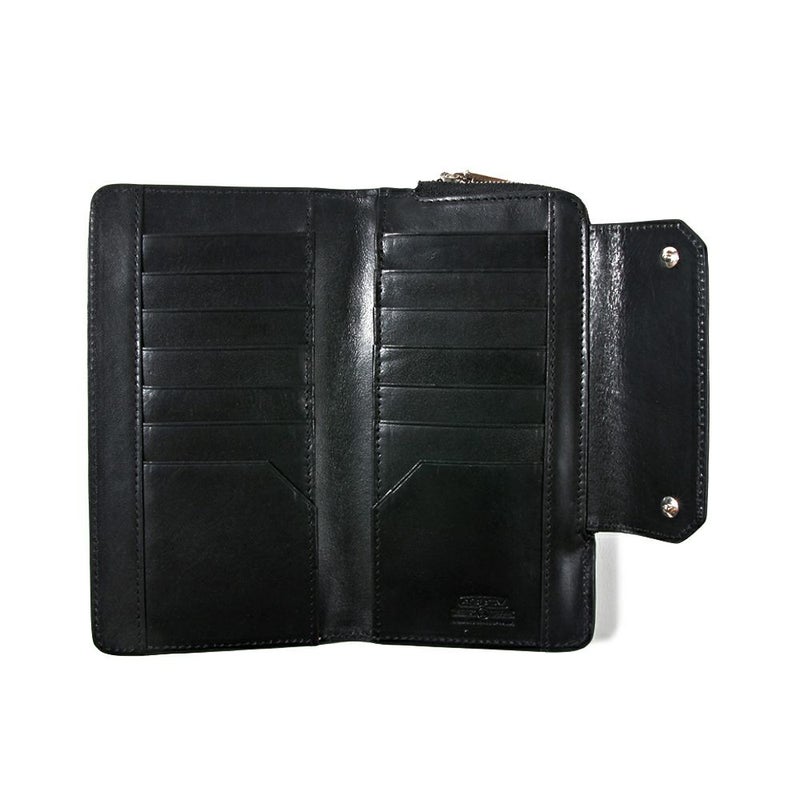 ケース・カバー無しのiPhone13/13proが入る大きさです。 ケース・カバー装着状態のiPhoneにつきましては、形状により収納が不可な場合もございます。 本体レザーは、イタリア中部トスカーナ州にあるサンタ・クローチェにある創業40年の歴史のあるCONCERIA YANKEE SRL社のベジタブルタンニンレザーを使用し、フランス産原皮を植物タンニンで鞣し、染料で染めて後にオイルを含ませ、仕上げに表面をアイロン掛けし上品な艶感を表現しております。 背面側L字ZIPポケットには携帯を入れれる様になっており、内装には傷がつきにくいよう起毛素材を使用しており、ファスナーにはYKKのEXELAZIPを使用しております。 シンプルなデザインに実用的な機能性を踏まえたシリーズになります。