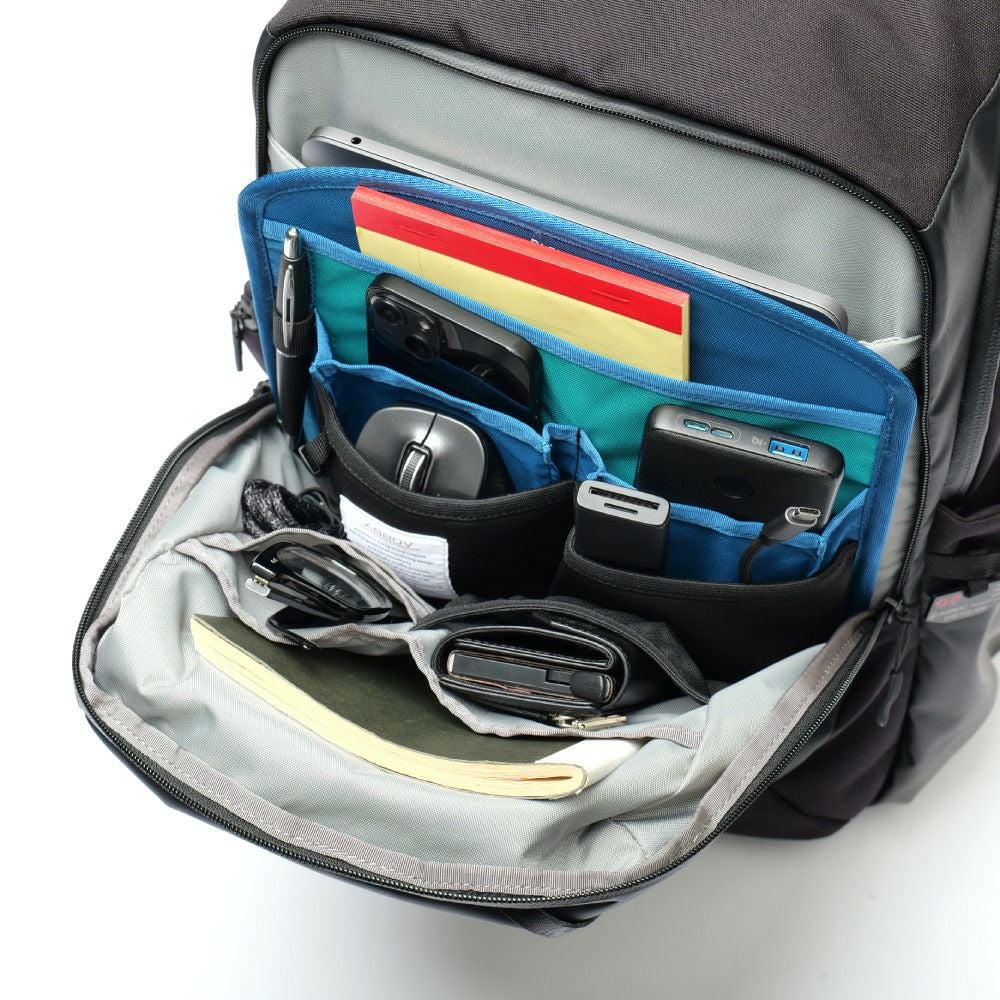 素材へのこだわりも一線を超えています。環境負荷を低減するリサイクルナイロンを使用しながら、独自開発の撥水コーティングを施した「EPICナイロン」は、雨を玉のように弾き、驚くほどの軽量性を誇ります。Sサイズという設計は、特に「都市生活における機動力」を重視する方にも最適。13インチクラスのPCスリーブを備えつつ、混雑した電車内や狭いカフェの椅子でも邪魔にならない絶妙なボリューム感を実現しました。