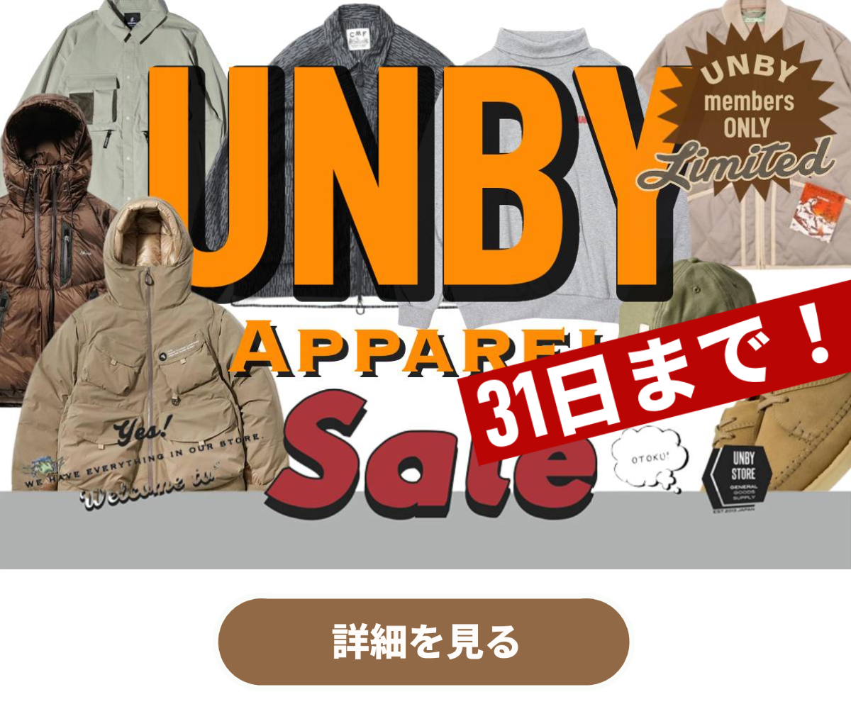 【アパレルアイテム】から【アウトドアギア】までUNBYならではの見ごたえのあるセールとなっております!