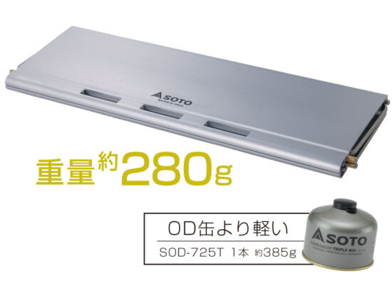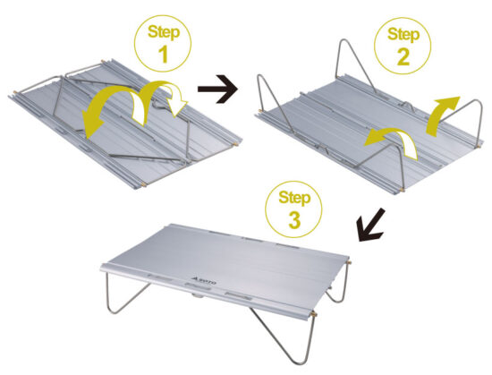 軽量化を図る登山者に向けた薄さ・軽さ・強度を兼ね備えたミニテーブル。 構造はシンプルでとても軽量。 使用時の組み立てがとても簡単な"かゆいところに手が届く"テーブルです。 収納時の厚みはわずか14mm 登山者に向けた薄くて軽量なミニテーブル。 パッキング時に貴重なスペースを占有することはありません。 重量は約280gで、これまでにない軽量化が実現。 OD缶1本分以下の重さで持ち運びに負担がありません。 3stepのシンプル構造 1.天板を開き、 2.脚を開き、 3.脚を天板に掛ければ完成 脚の着脱などは不要で、全てのパーツが一体式のため、部品紛失リスクがありません。 アルミの押出材を天板に使用することで強度を保ちつつ、収納サイズの薄さや設置の手間が少なくなるよう開発。 軽量でありながらも強度を兼ね備えたテーブルです。 収納ポーチの素材はタイベックを採用。 耐水性、強度、安全性に優れています。