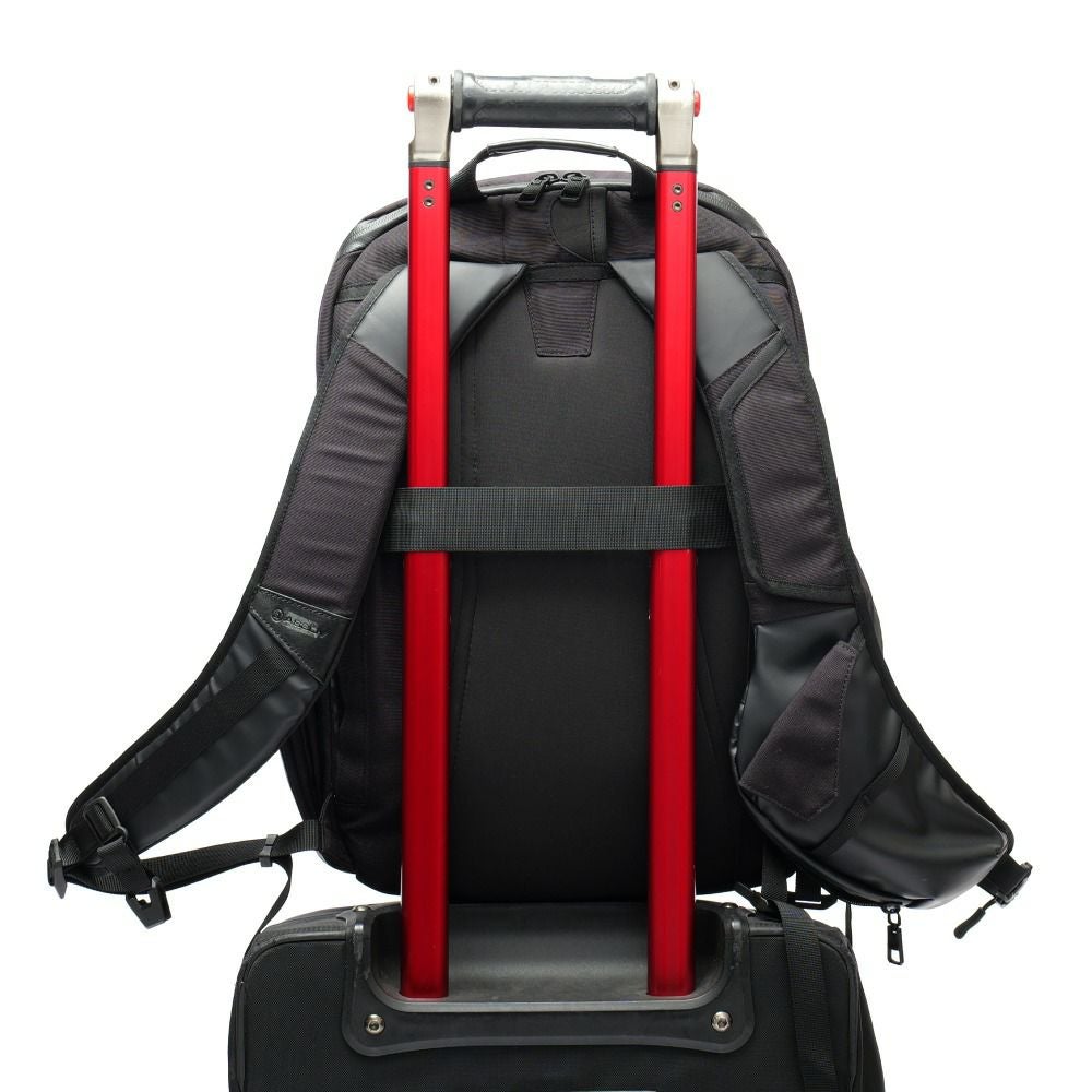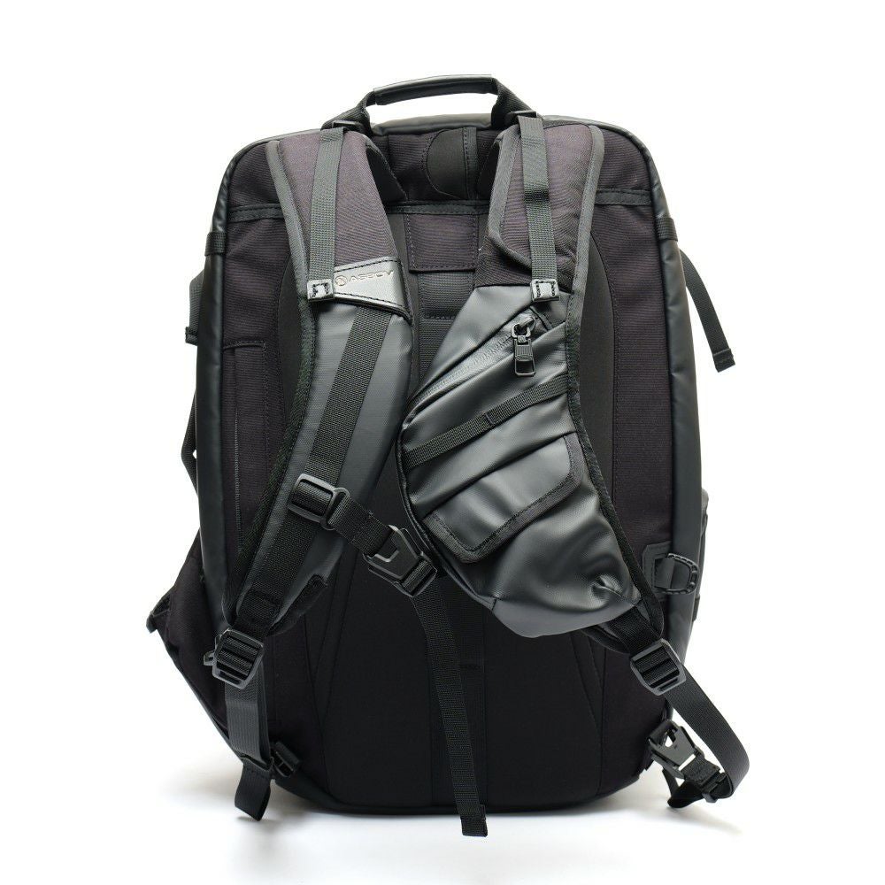 また、長期移動に欠かせないのが「背負い心地」の追求です。大型設計だからこそ、ショルダーハーネスのクッション性にはAS2OVならではのこだわりが詰まっています。背面のセットアップ機能を使えば、キャリーケースのハンドルに固定できるため、大きな荷物との2個持ちでも移動を劇的に楽にしてくれます。まさに、旅行バッグのおすすめとして真っ先に名前が挙がる機能性です。 シリーズ最大容量を誇るLサイズ。15インチPC対応の独立スリーブやキャリーセットアップ機能など、出張・旅行に特化したギミックが満載です。仕事用メンズリュックとして、タフでスマートな移動を約束します。