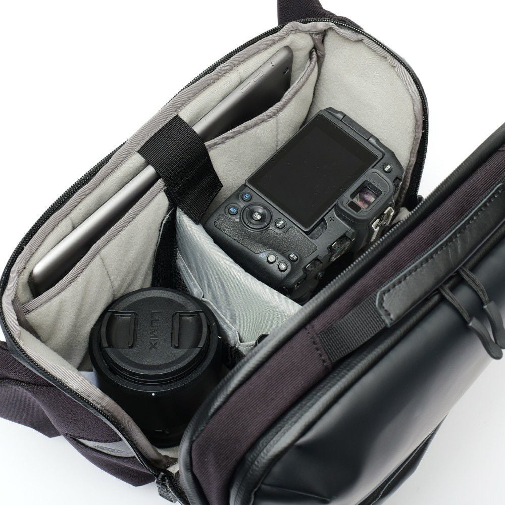 カメラバッグにありがちな「いかにもな専門機材感」を排除し、シリーズ特有の上品な素材で仕上げているため、仕事バッグのカジュアルな通勤シーンにも違和感なく馴染みます。クリエイティブな仕事をしている方が、PCバッグとは別に「機材専用のサブバッグ」として持ち歩く姿は、周囲にプロフェッショナルでおしゃれな印象を与えます。 大切な機材を保護するクッション内蔵のカメラバッグ。旅行バッグのショルダーとして旅先の撮影をサポートするのはもちろん、ガジェット類の持ち運びに最適な仕事バッグのカジュアルな選択肢です。