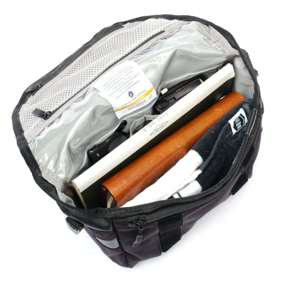 このバッグの最大の特徴は、全面に配置された肉厚のクッション材。仕事バッグの中身として、一眼レフカメラやレンズ、あるいはタブレットやドローンといった衝撃に弱いガジェットを安心して預けることができます。内側の仕切りは動かすことが可能で、自分の収納物に合わせてカスタマイズできるのが嬉しいポイントです。
