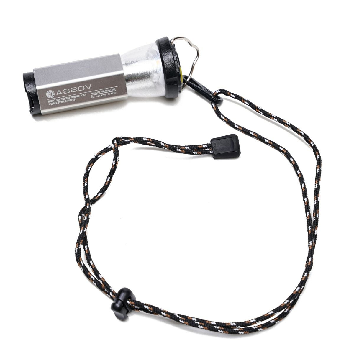 冒頭にご紹介していたアルミのランタンカバーと同様に、AS2OV オリジナルコードが付属。もちろん首に吊り下げたりテント内のフック等に下げても便利に使えます!