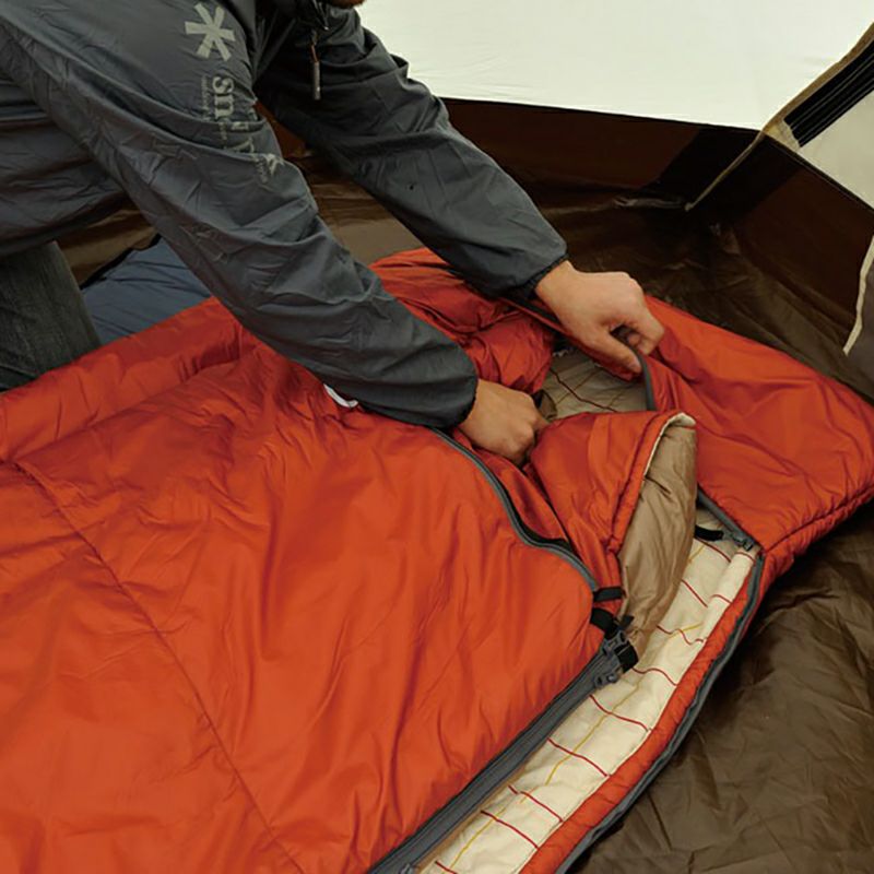 そのため、上下でセパレートできる仕様になっているのが特徴。快適温度は8℃のため、冬キャンプシーンでこのシュラフだけで寝ることはできず、プラスで寝具が必要ですが、掛け布団部分をセパレートできるので、夏も含めたオールシーズン使えるシュラフなのです。
