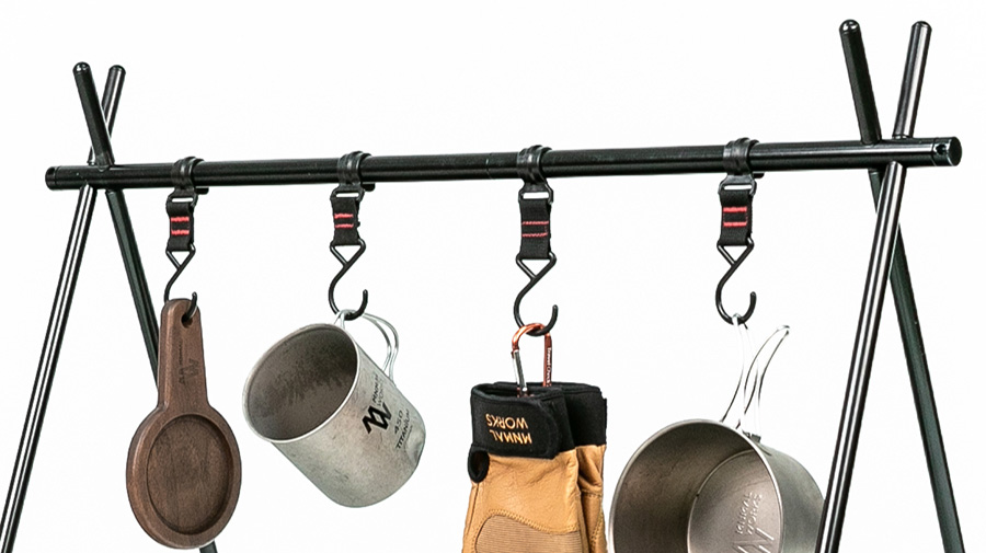 専用のフックを取り付けることによって、カップやシェラカップなども掛けることも可能に。