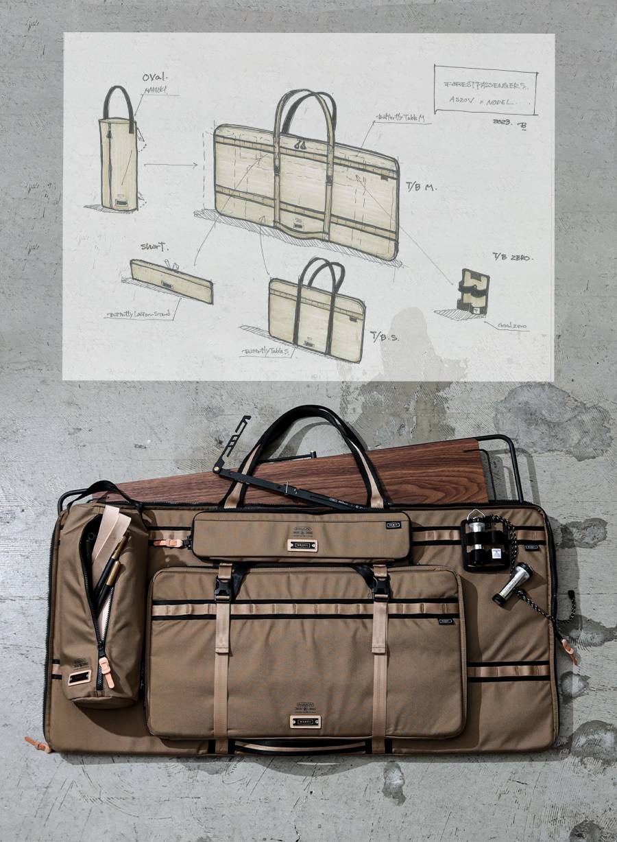 AS2OV の鞄を使われていた BECK さんよりお声がけいただき、BECKさんの作りたいイメージのバッグをヒアリングし、制作しました。