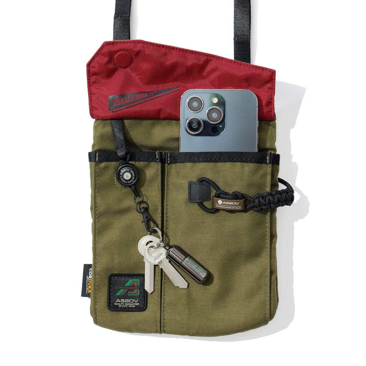 AS2OVのこだわりが詰まったこのサコッシュは、ファッション性と実用性を兼ね備え、便利に行動できることは間違いありません! UNBY.inc が生地開発した耐水CORDURA®︎ファブリックを使用した、ちょっと出かける時に必要最低限の荷物が入るコンパクトなサコッシュ。