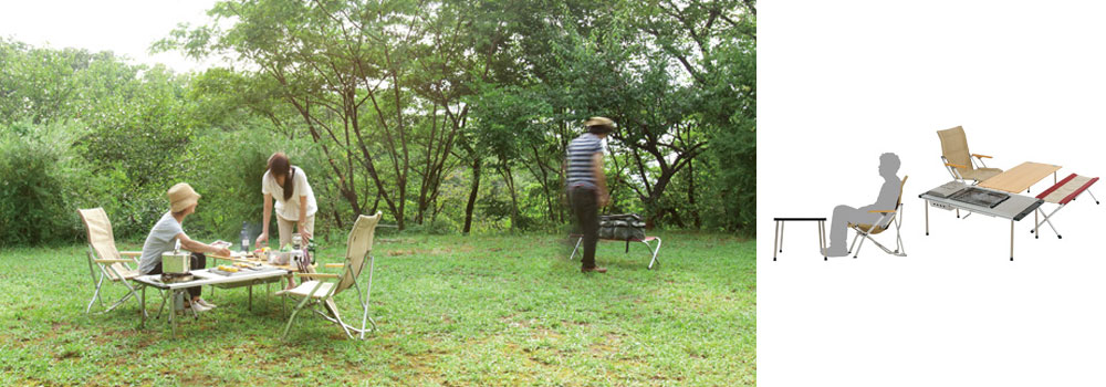 ベンチに腰掛けて調理や食事を楽しむローポジション400mmの脚セット。 アイアングリルテーブル(IGT)専用の脚シリーズ。マルチファンクションテーブル用の脚としても使用できます。 セット内容:本体、メッシュケース IGT アイアングリルテーブルについて ベンチやローチェアで気軽にロースタイル 400mm脚は、ベンチやローチェアに腰かけて調理や食事を楽しむのに最も適した高さです。ロースタイルであっても、テーブルのスペースを拡張して調理スペースとダイニングスペースをしっかり作る事ができます。 スタイルに応じて選べる4種類の長さの脚 立ち作業に最適は830mm脚を使ったハイスタイル、FDチェアに座って丁度良い高さの660mm脚を使ったミドルスタイル、ベンチやローチェアに最適な高さで400mm脚を使ったロースタイル、300mm脚を使った地球に一番近いグラウンドスタイルを楽しむことができます。 脚の取付方法 脚の本体への装着は、脚の先端のツメを確認しながらIGTフレームに差し込んでクイっと回すだけの簡単固定。外すときは逆に回して外します。 脚のアジャスター 脚の接地部には、ねじ式のアジャスターを付けていますので、設置場所の凹凸に合わせて調節することで、テーブルの水平を保つことができます。