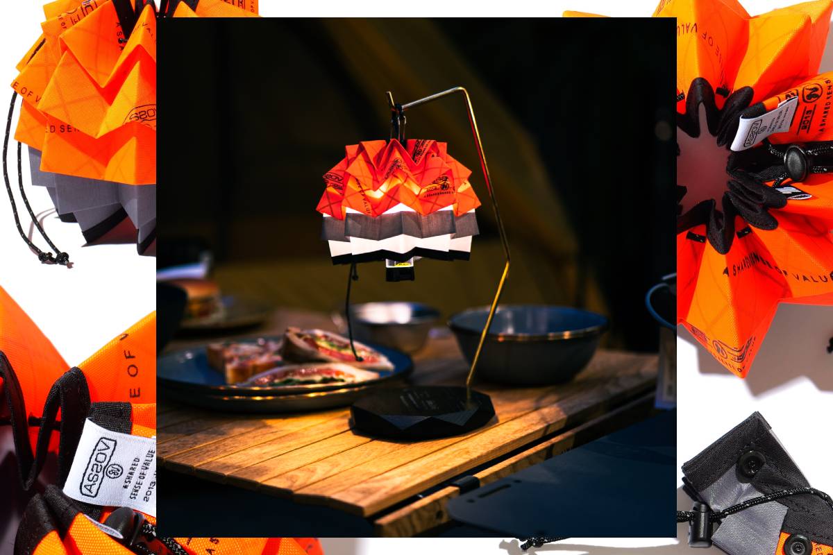 ECOPAKで発色性の優れたオレンジカラーと、DYNEEMAのグレーを採用しUNBYらしい配色にしました。点灯時だけでなく消灯時もキャンプサイトを鮮やかに彩ってくれます。