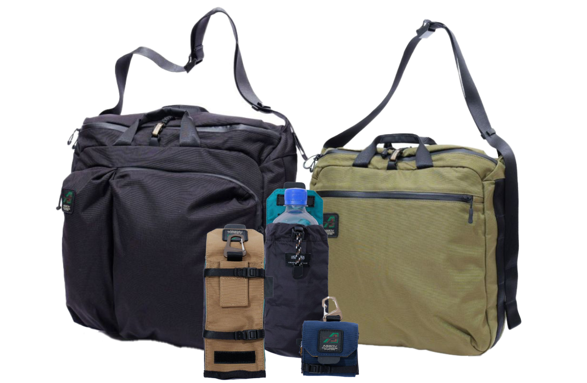 デイパックとメッセンジャー、ショルダー、トートショルダーのLとSとオプションのモバイルポーチとボトルホルダー。
