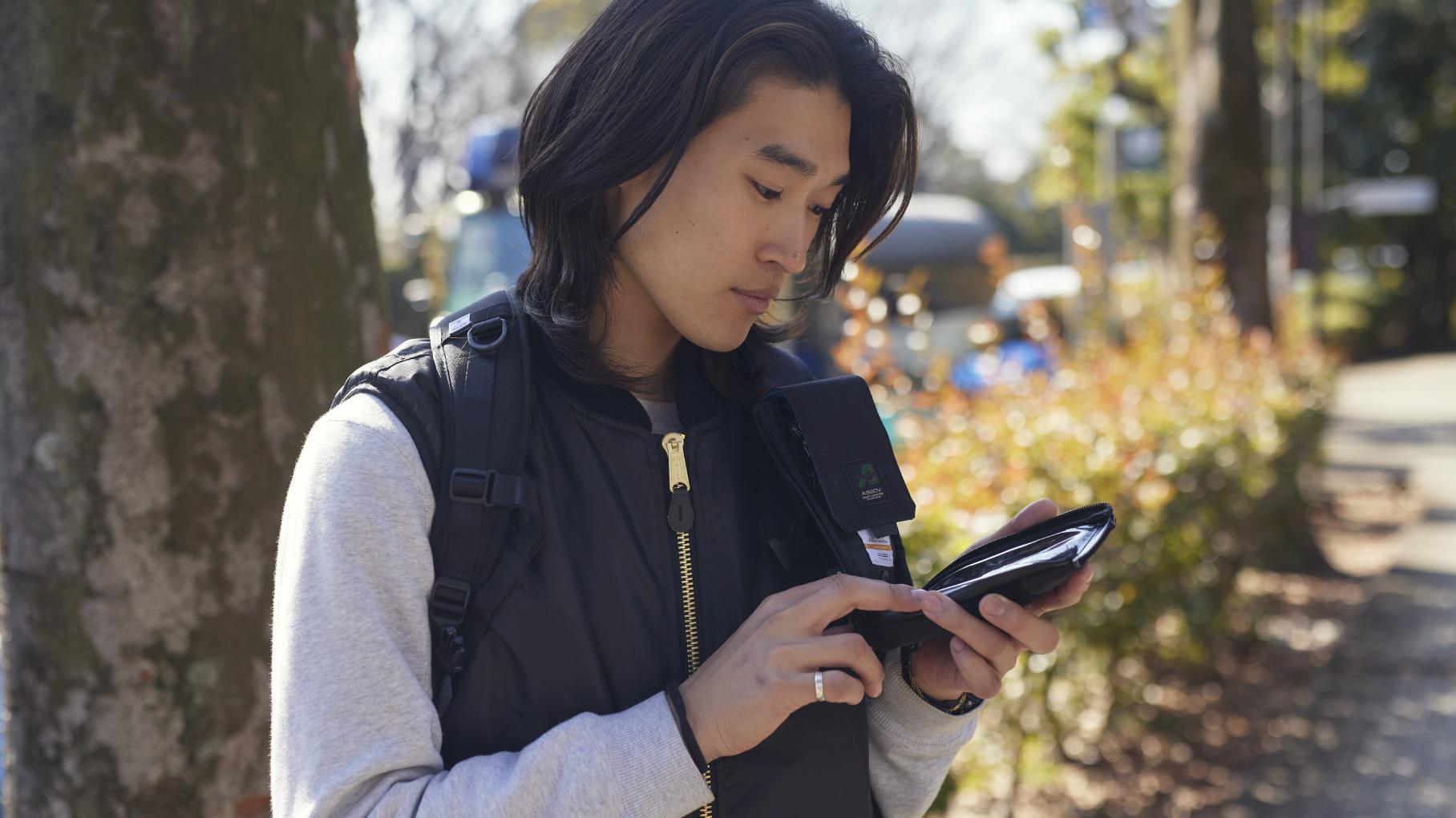 STANDERDシリーズやその他の鞄のショルダーハーネスに取り付けることで、モバイルバッテリーからスマホを充電しながら快適に操作することができます。