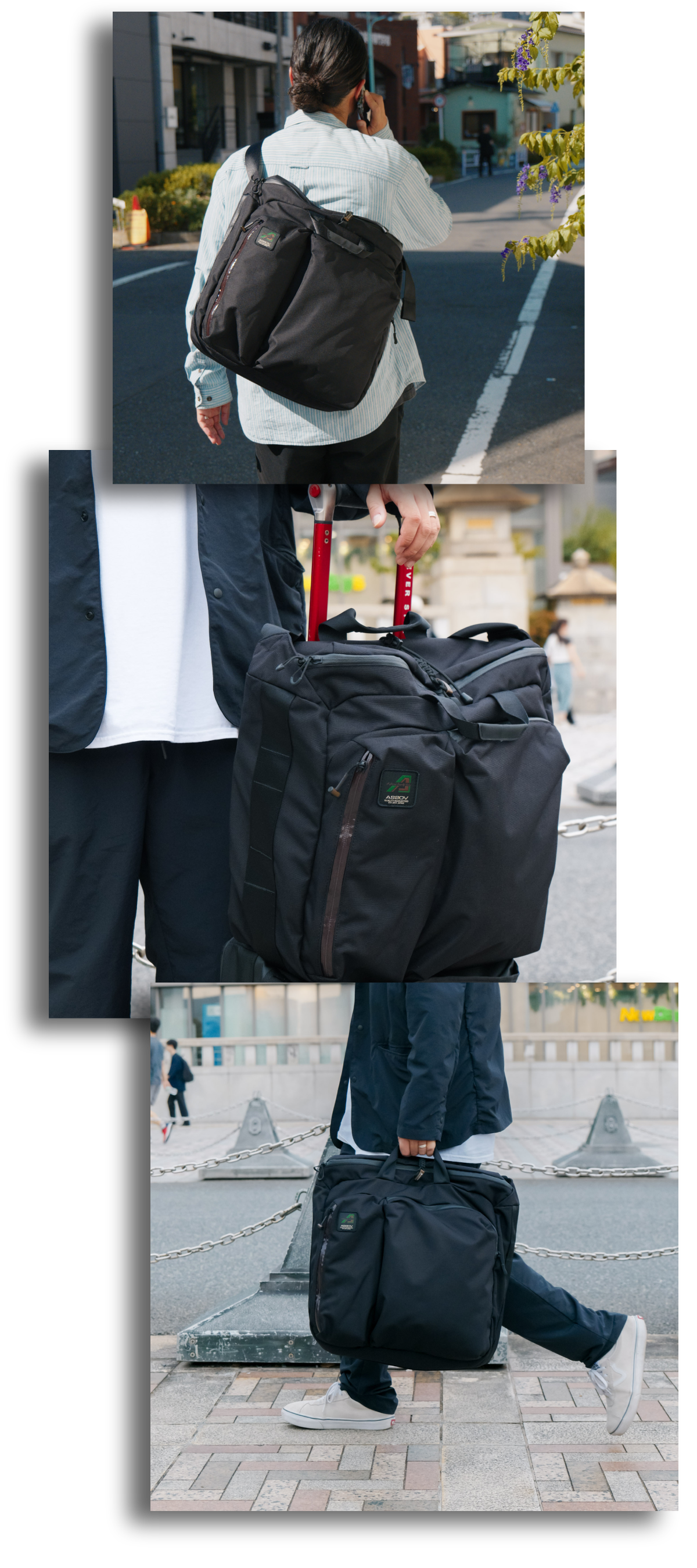 AS2OVから、新しいスタンダードを提案。定番なデザインを現代風にリミックスし、アルミパーツと防水素材を巧みに組み合わせました。