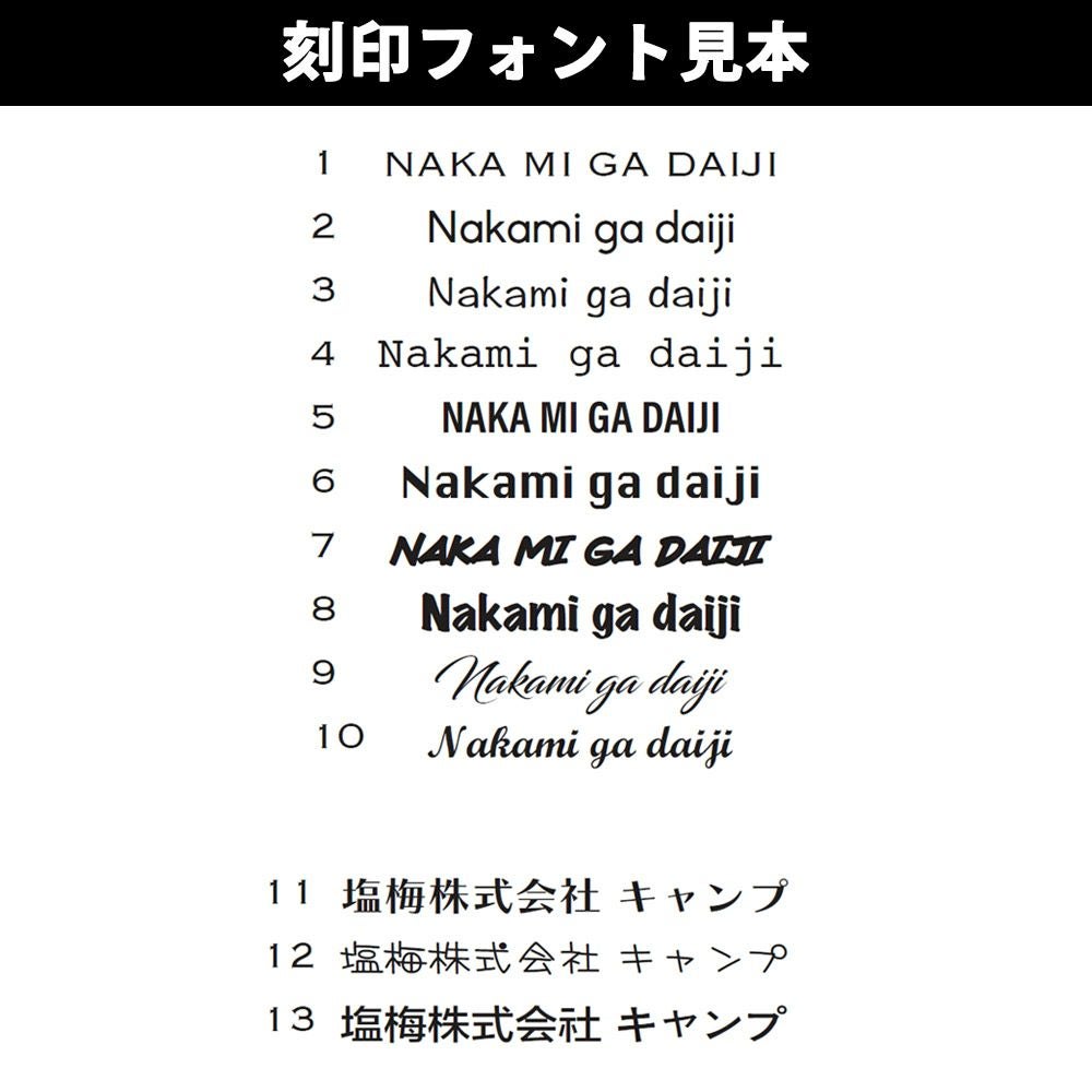 13種類ある中からご希望のフォントをお選び頂けます。刻印代:¥1,650(税込)
