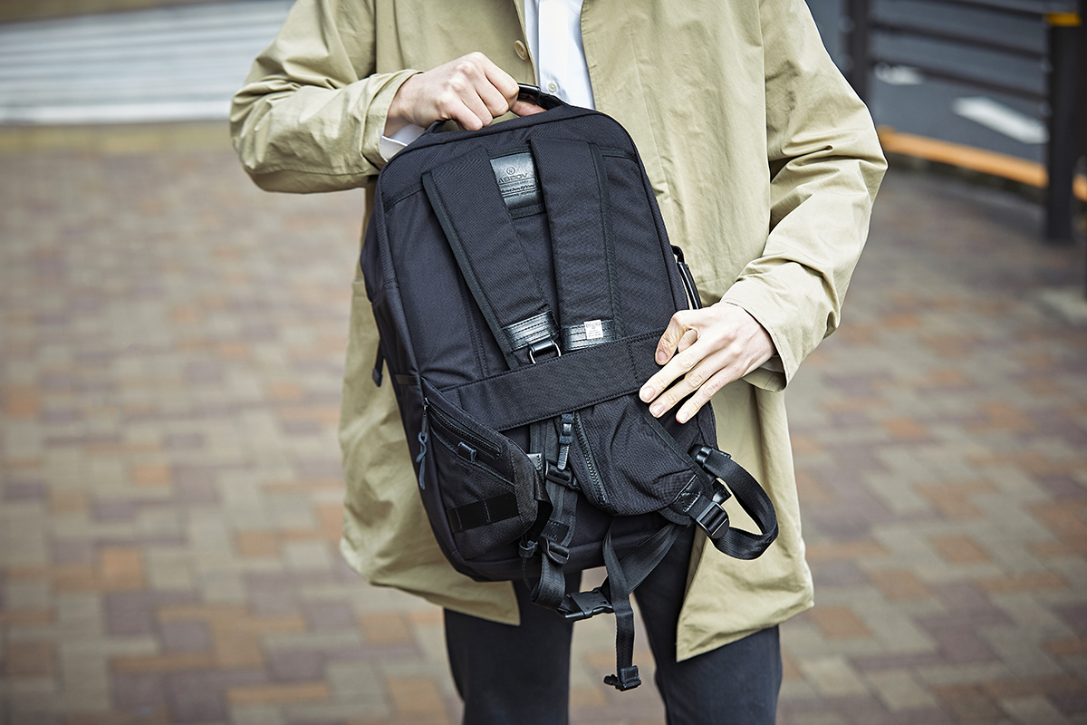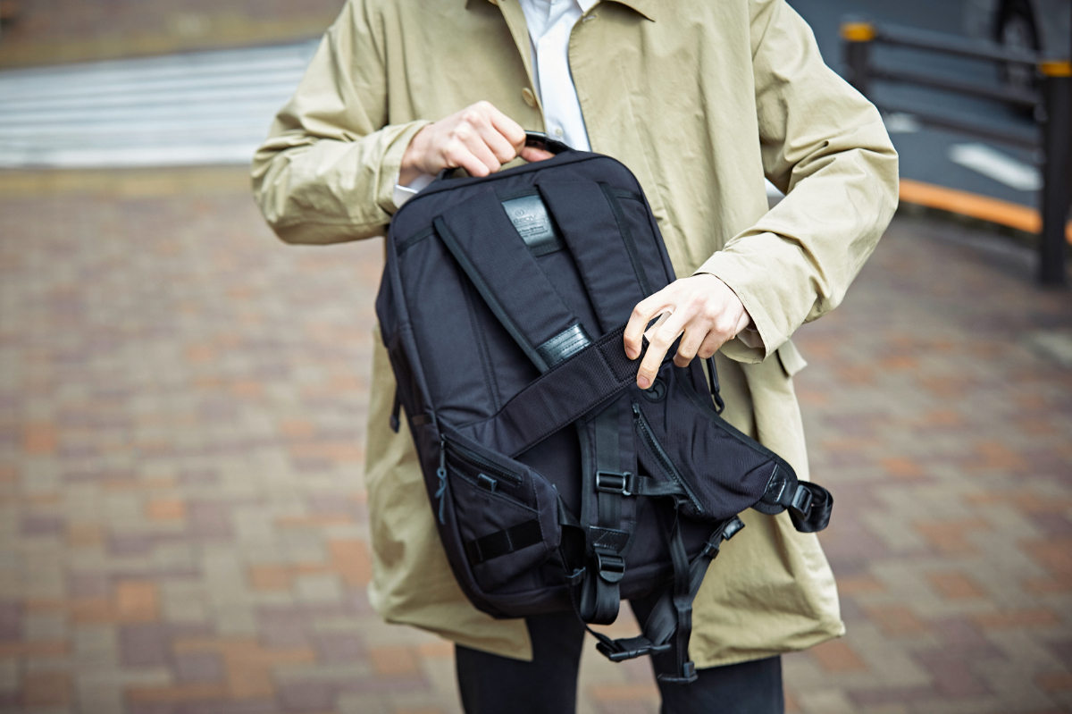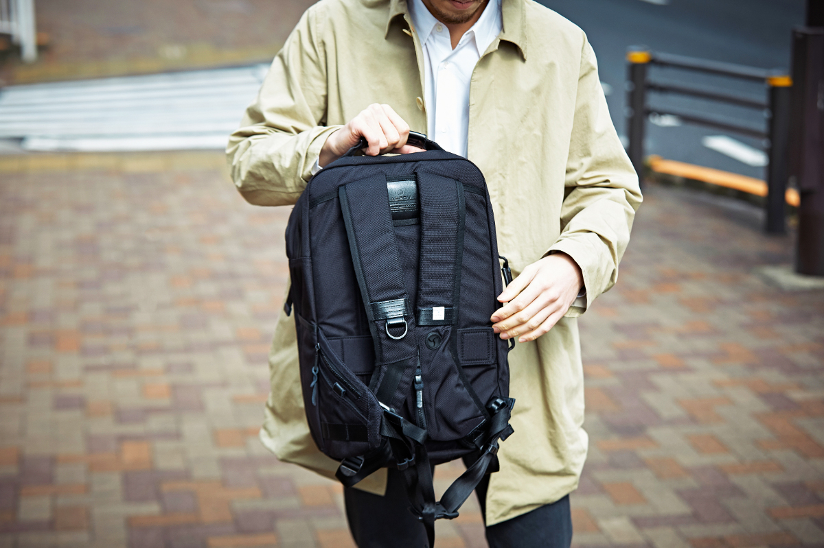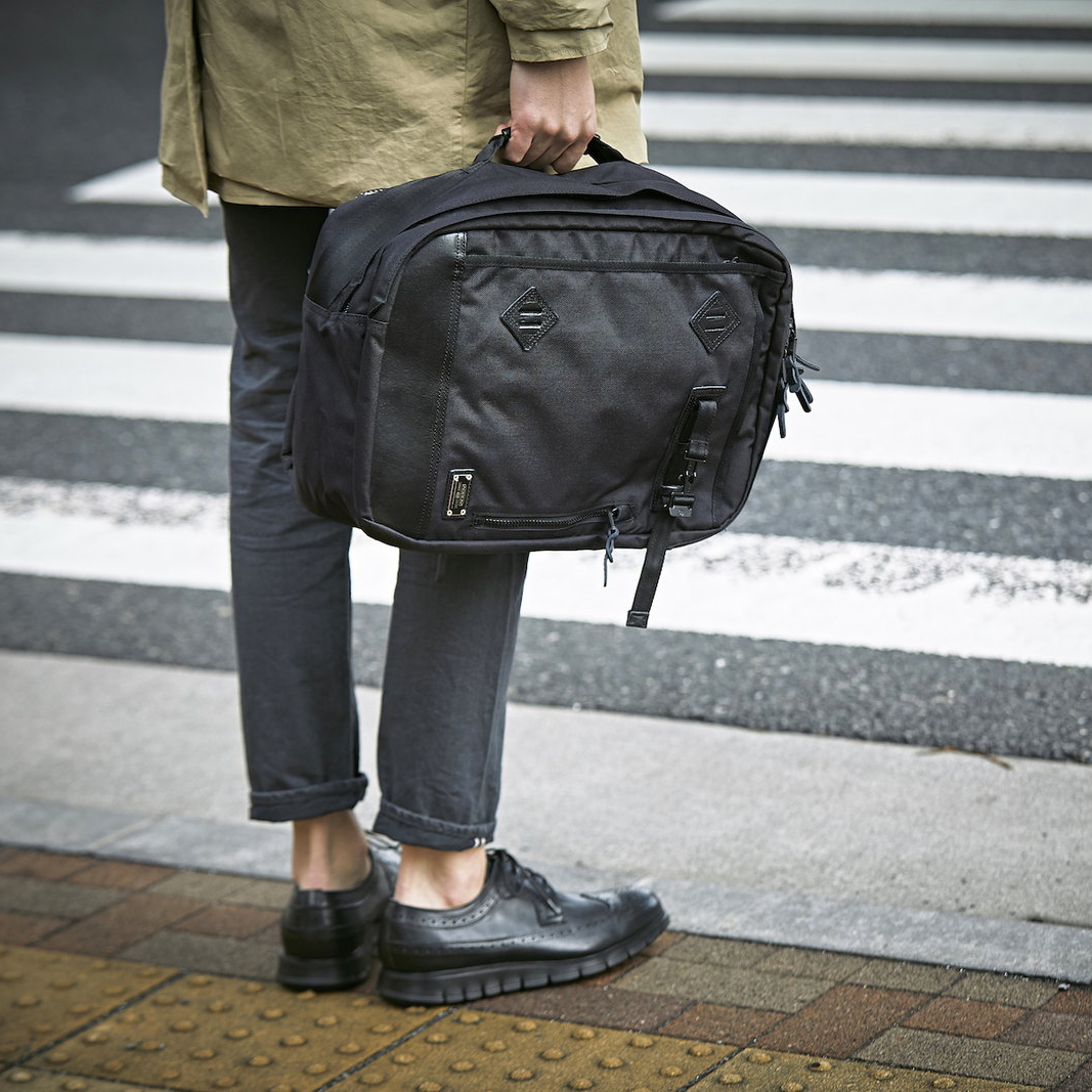 デイリーから1~2泊の出張までフォロー出来る、汎用性の高い3WAYバッグ。背負ったときのシルエットにオーセンティックなカッコよさがあり、まとまりやすいアイテムです。