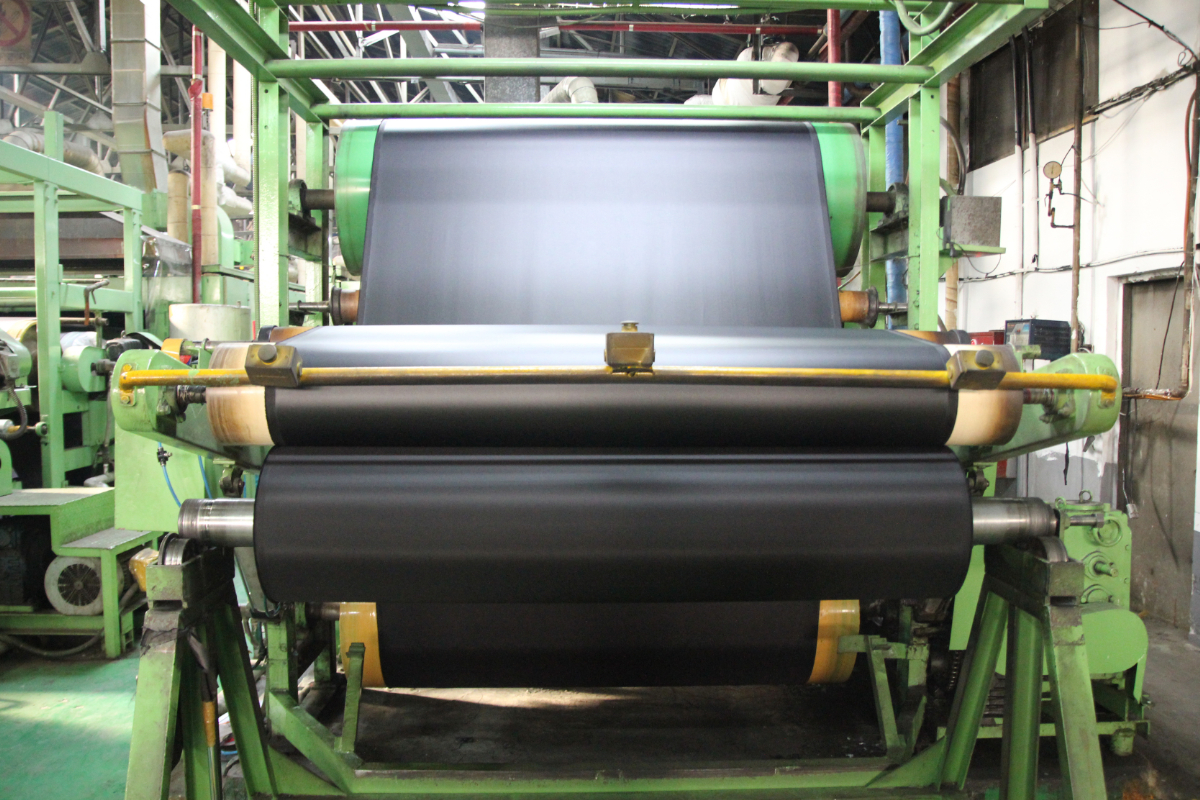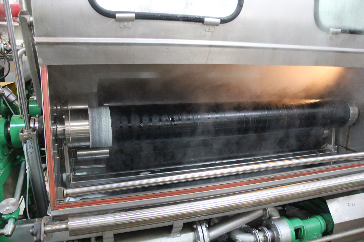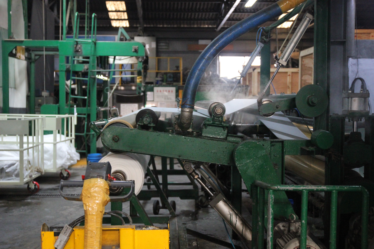 また糸の仕上げに関しても、タテ糸は500Dのブライト糸をATY加工 (機械を使用し糸自体に空気を含ませる) を施しスパンライク調にした後、撚ったものを2本引き揃え、ヨコ糸は420Dのブライト糸を撚ったものを2本引き揃えオックス織りしています。