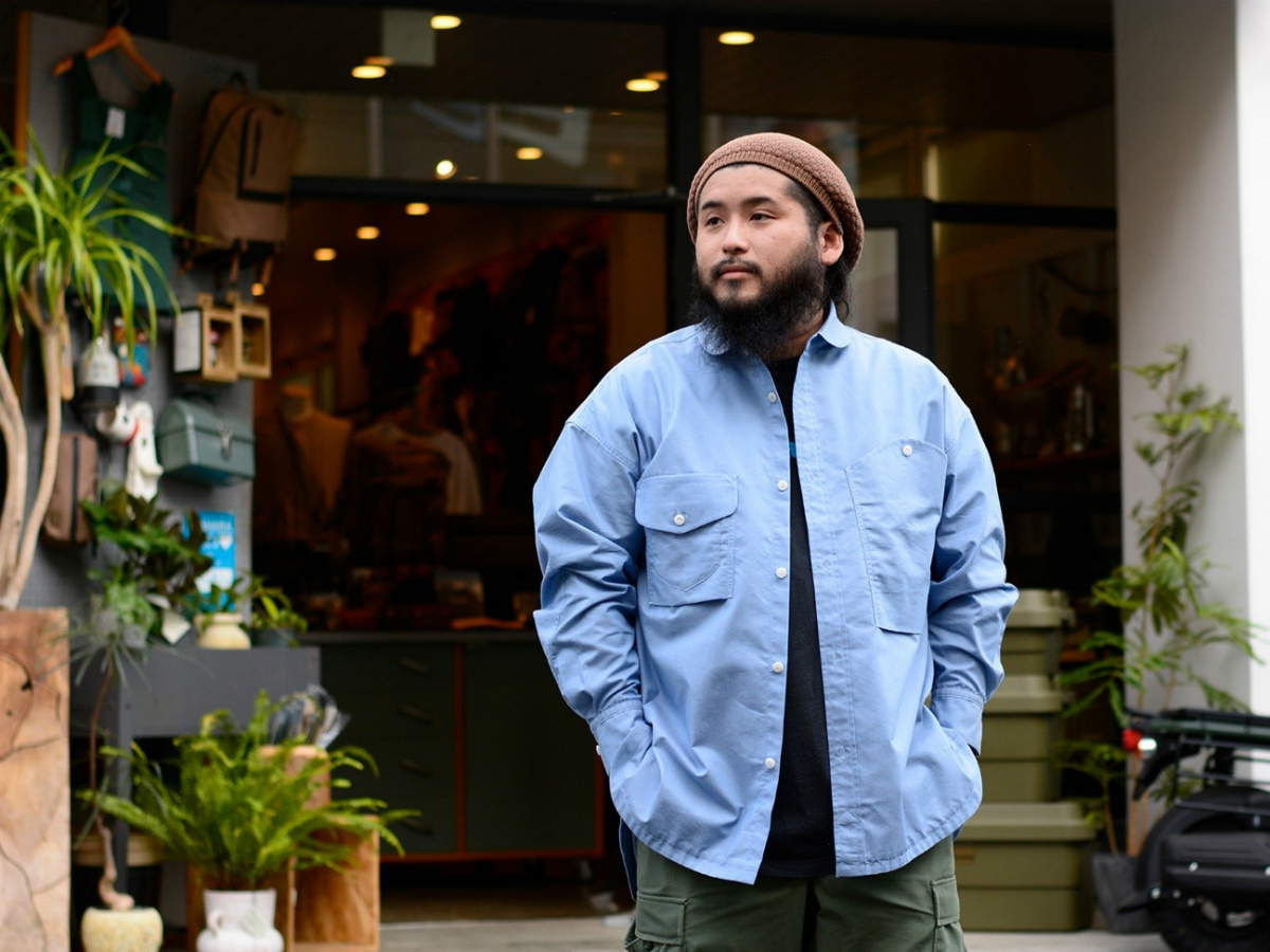 袖口のオリジナルギミック「エラスティックバンド」は、簡単に袖口をキュッと絞ることができるので、アウトドアシーンなどで袖をまくった時のずり落ち防止に一役買ってくれます。身幅は広めに取ってあり、ディレクター野澤氏のこだわりでもある横から見たときのシルエットは抜群です。“街でもアウトドアでもこればっかり”そんなシャツです。