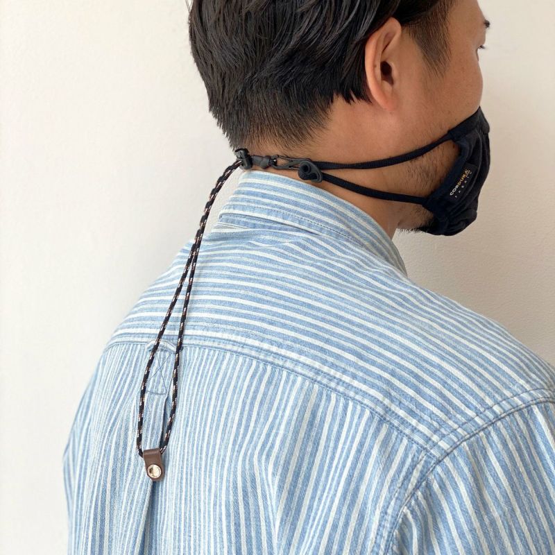 付属のストラップが便利です。普段マスクをしていて耳が痛くなる方や、耳が小さい方には特にオススメできる仕様になっています。ストラップ無しでも上のマスク【3LAYER MASK】と同じように耳周りにアジャスター機能があるので使い勝手が良いです。