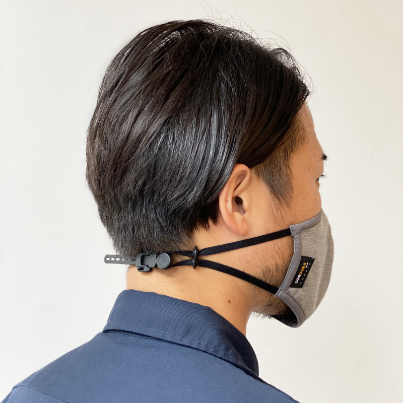 アジャストパーツを調整することで、耳にマスクの紐をかけずマスクをつけられます。