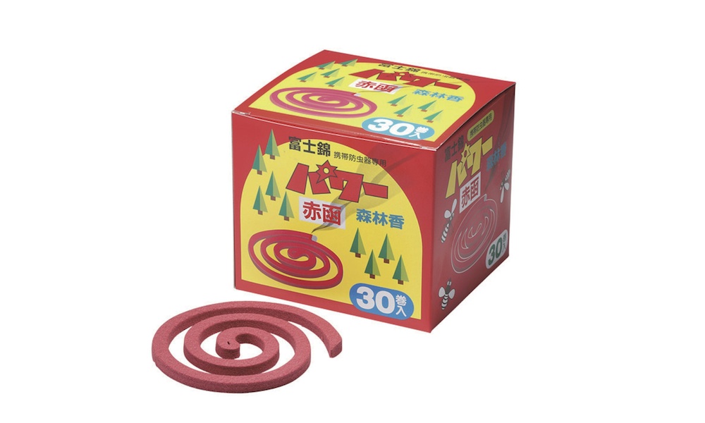 蚊取り線香よりもちょっと太い、赤いグルグルです。虫よけ線香ですが有効成分のメトフルトリンは殺虫及び忌避、両方に効果があります。